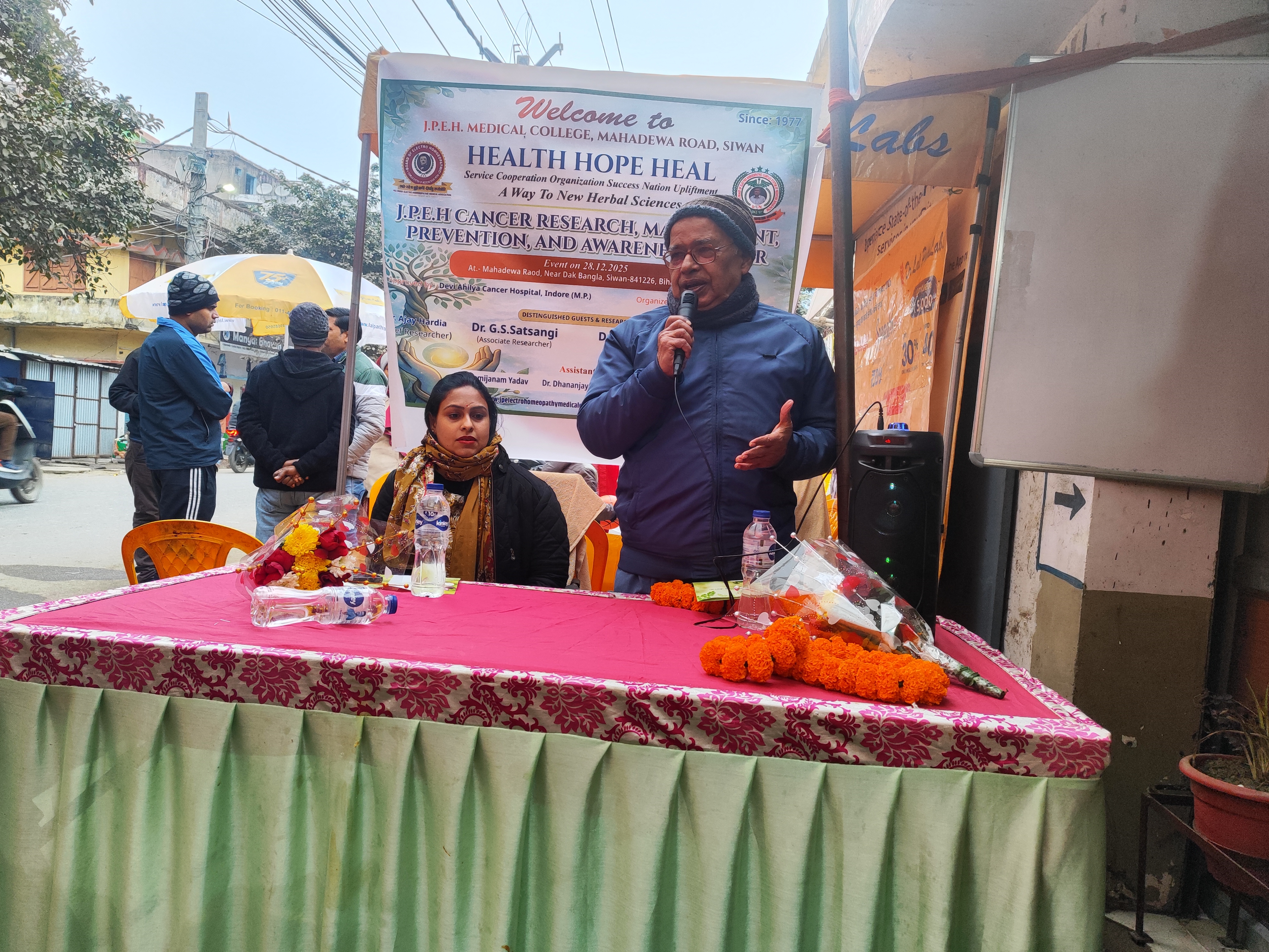 सीवान।दिनांक 28 दिसम्बर 2025 को बोर्ड आफ इलेक्ट्रो होमियोपैथी काम्पलेक्स सिस्टम आफ मेडिसिन, बिहार, पटना के सौजन्य से जेपीईएच मेडिकल कॉलेज एवं हास्पिटल, सीवान (बिहार) में जेपीईएच कैंसर रिसर्च मैनेजमेंट प्रीवेंशन एण्ड एवारनेस सेंटर , सीवान संबंद्ध देवी अहिल्या कैंसर हास्पिटल इंदौर (मध्य प्रदेश) का विधिवत उद्धाटन जिलाध्यक्ष (भाजपा) श्री राहुल तिवारी द्वारा डायरेक्टर सह प्राचार्य डा. जी.एस. सत्संगी, रजिस्ट्रार डा. डी. के. सिन्हा, मैनेजिंग डायरेक्टर डा. गोबिंद कुमार, डा. भानु प्रकाश नारायण ( गोरखपुर) , डा. धन्नजय शर्मा, डा. रामजन्म यादव, डा. एन एल गिरी, डा. देवेन्द्र चौबे, डा. संजय कुमार सिंह , डा. अभिषेक यादव ( हजारीबाग) , डा. कुमार ( प्रतिनिधि डा. धर्म पाल मंडल/खगड़िया), समाजसेवी श्री विशाल कुमार ,श्री अजय पासवान इत्यादि गणमान्य व्यक्तियों की उपस्थिति में किया गया। इस अवसर पर मुख्य अतिथि विहार राज्य महिला प्रकोष्ठ की अध्यक्षा श्रीमती रुपल आनन्द , समाज सेवी आर. एन. पाठक सहित इलेक्ट्रोहोमियोपैथी चिकित्सकों ने सम्मेलन को संबोधित किया।देवी अहिल्या कैंसर हास्पिटल, इंदौर के डायरेक्टर डा. अजय हार्डिया ने मोबाइल के माध्यम से संबोधित करते हुए शुभकामना व्यक्त की। लाल पैथोलॉजी के सौजन्य से नि:शुल्क शारीरिक एवं ब्लड जांच किया गया।