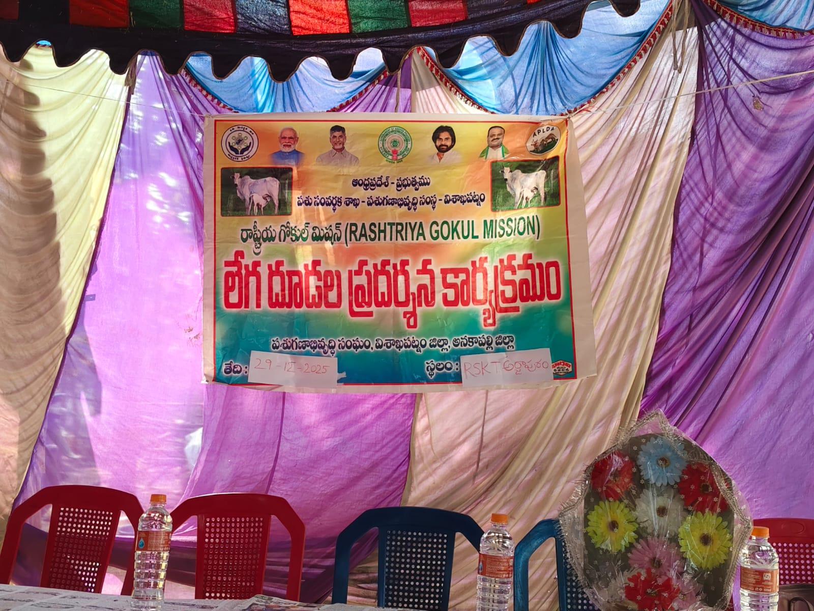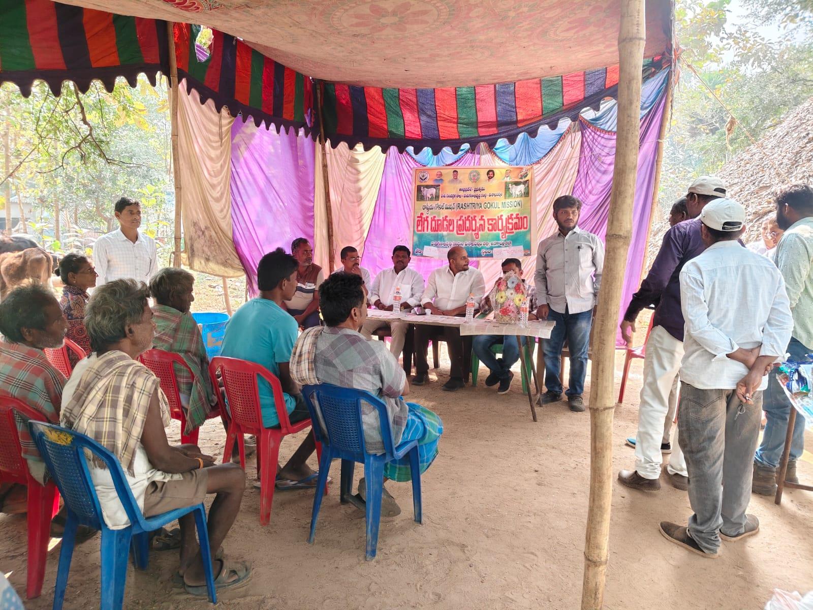 అనకాపల్లి జిల్లా రావికమతం మండలం టి.అర్జాపురం గ్రామంలో రాష్ట్రీయ గోకుల్ మిషన్ ఆధ్వర్యంలో లేగ దూడల ప్రదర్శన కార్యక్రమం ఘనంగా జరిగింది. ఈ సందర్భంగా స్థానిక రైతులు పెద్ద ఎత్తున పాల్గొని స్వదేశీ జాతి పశువుల సంరక్షణ, అభివృద్ధిపై అవగాహన సంపాదించారు. కార్యక్రమం వివరాలు కేంద్ర ప్రభుత్వ రాష్ట్రీయ గోకుల్ మిషన్ లో భాగంగా ఈ దూడల ప్రదర్శనను పశుసంవర్ధక శాఖ ఆధ్వర్యంలో నిర్వహించారు. స్వదేశీ పశువుల ఉత్పాదకత పెంపు, మంచి జాతి దూడల పెంపకాన్ని ప్రోత్సహించడం ఈ కార్యక్రమ ప్రధాన లక్ష్యంగా నిర్వాహకులు పేర్కొన్నారు. , కార్యక్రమంలో బీజేపీ మండల అధ్యక్షులు, మేడివాడ కోఆపరేటివ్ చైర్మన్ గుటాల చిన్న పాల్గొని రైతులకు ఉద్దేశించి మాట్లాడారు. టి.అర్జాపురం వైస్ ప్రెసిడెంట్ సీతిన రాము, రావికమతం బిజెపి ప్రధాన కార్యదర్శి దంట్ల సత్యనారాయణ, రోలుగుంట తట్ట బంధ, కొత్తకోట పశు వైద్యాధికారులు, ఏడి పర్యవేక్షణలో కార్యక్రమ ఏర్పాట్లు జరిగాయి. కార్యక్రమం ఉదయం నుంచే దూడలతో రైతులు వచ్చి ఆరోగ్యం, జాతి గుణాత్మక తో, సంరక్షణ పద్ధతుల ఆధారంగా నిపుణులు పరిశీలించారు. ప్రదర్శనలో పాల్గొన్న పశుసంవర్థక అధికారులు మంచి దూడల ఎంపిక, ఆహార నిర్వహణ, టీకాల ప్రాముఖ్యత పై రైతులకు సూచనలు అందించారు. ఈ కార్యక్రమం ద్వారా స్వదేశీ జాతుల సంరక్షణ తోపాటు పాడి పరిశ్రమను లాభదాయకంగా మార్చుకోవచ్చని అధికారలు వివరించారు. ఎంపికైన ఉత్తమ దూడలకు పురస్కారాలు, ప్రోత్సాహక బహుమతులు ఇవ్వడం ద్వారా మరింత మంది రైతులు ఈ మిషన్లో భాగస్వాములు కావాలని పశుసంవర్ధక శాఖ పిలుపునిచ్చింది.