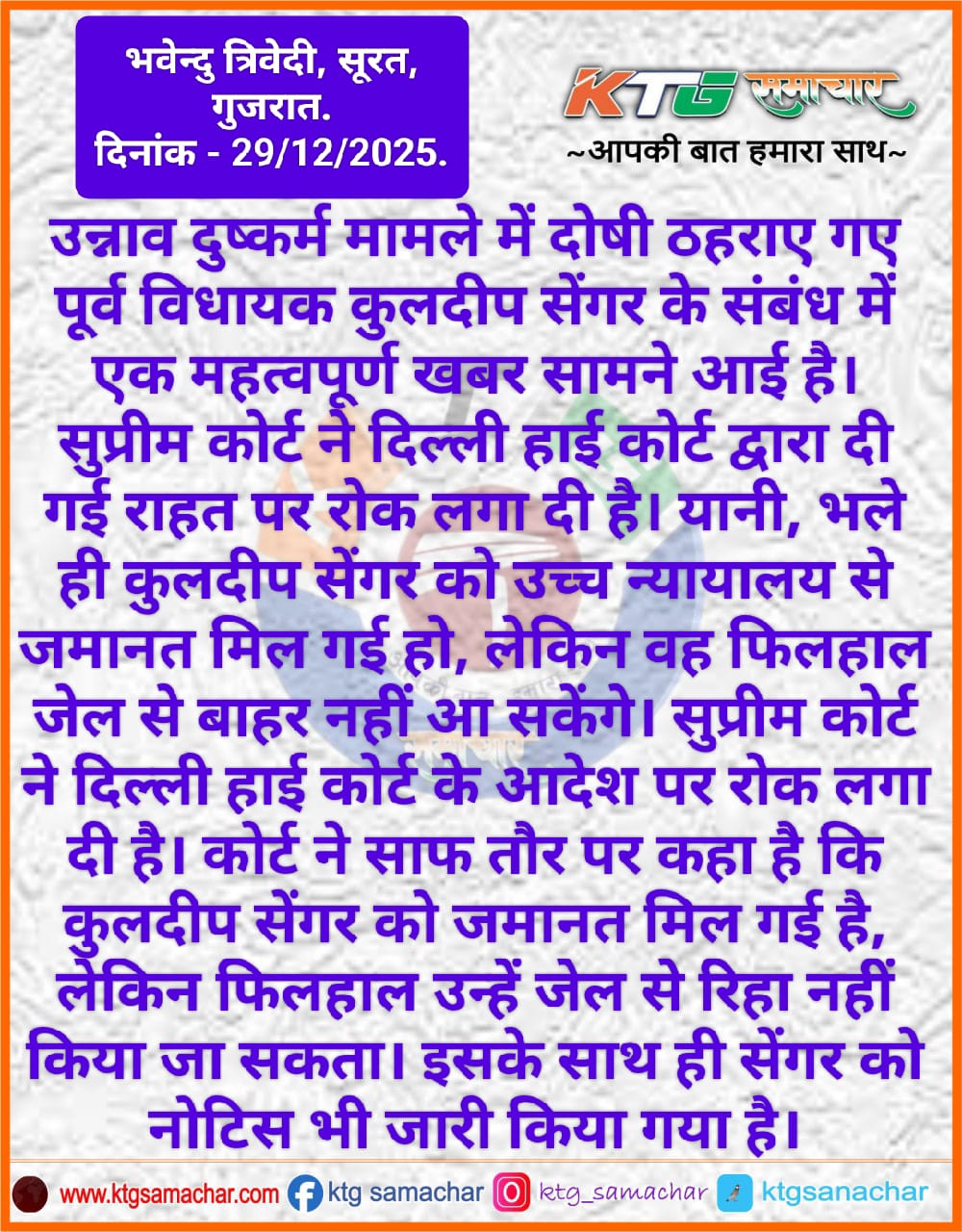 उन्नाव दुष्कर्म मामले मे एक महत्वपूर्ण खबर सामने आई है।