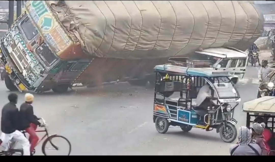 рдПрдХ рддреЗрдЬрд╝ рд░рдлреНрддрд╛рд░ рдЯреНрд░рдХ рдбрд┐рд╡рд╛рдЗрдбрд░ рдкрд░ рдЪрдврд╝рдХрд░ рдкрд▓рдЯ рдЧрдпрд╛, рдЬрд┐рд╕рд╕реЗ рдкрд╛рд╕ рд╕реЗ рдЧреБрдЬрд░ рд░рд╣реА рдХрдИ рдЧрд╛рдбрд╝рд┐рдпрд╛рдБ рдЙрд╕рдХреЗ рдиреАрдЪреЗ рджрдм рдЧрдИрдВред