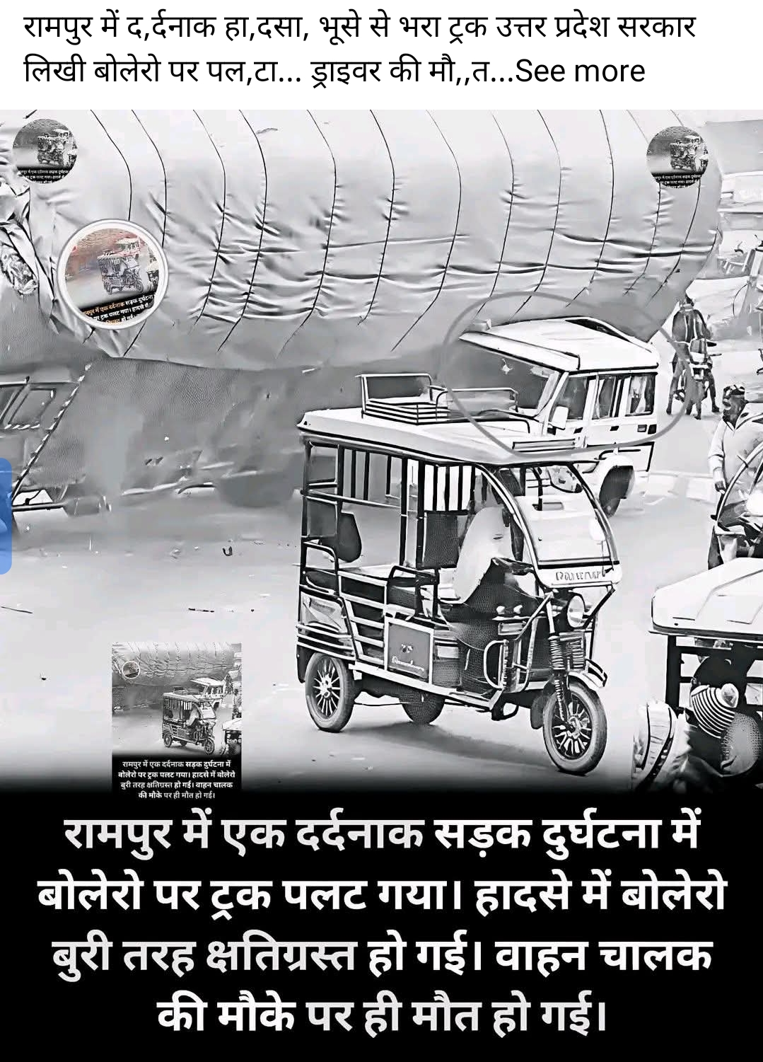 उत्तर प्रदेश के रामपुर में रविवार को एक द@र्दनाक हाद*सा हो गया. जहां भूसे से भरा एक ट्रक उत्तर प्रदेश सरकार लिखे एक बोलेरो पर पलट गया.