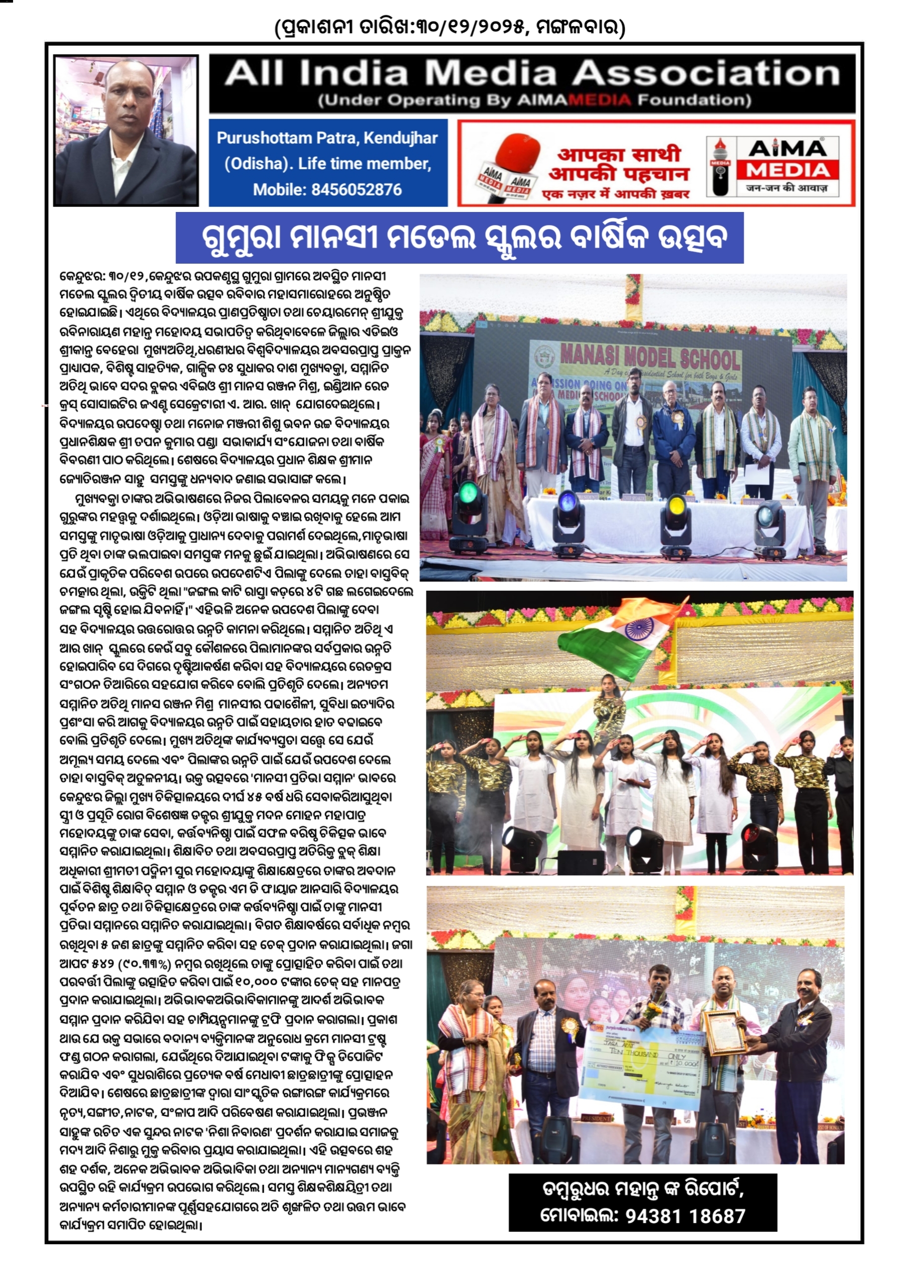 ଗୁମୁରା ମାନସୀ ମଡେଲ ସ୍କୁଲର ବାର୍ଷିକ ଉତ୍ସବ।