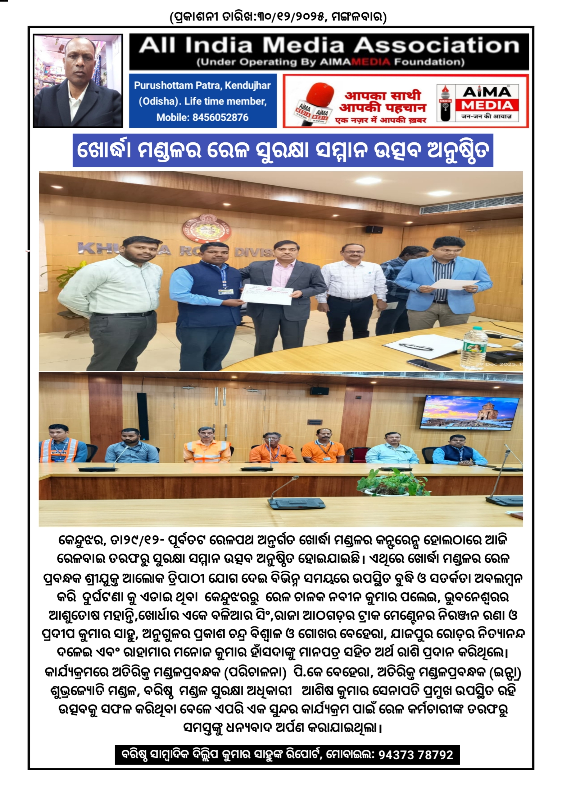 ଖୋର୍ଦ୍ଧା ମଣ୍ଡଳର ରେଳ ସୁରକ୍ଷା ସମ୍ମାନ ଉତ୍ସବ ଅନୁଷ୍ଠିତ।