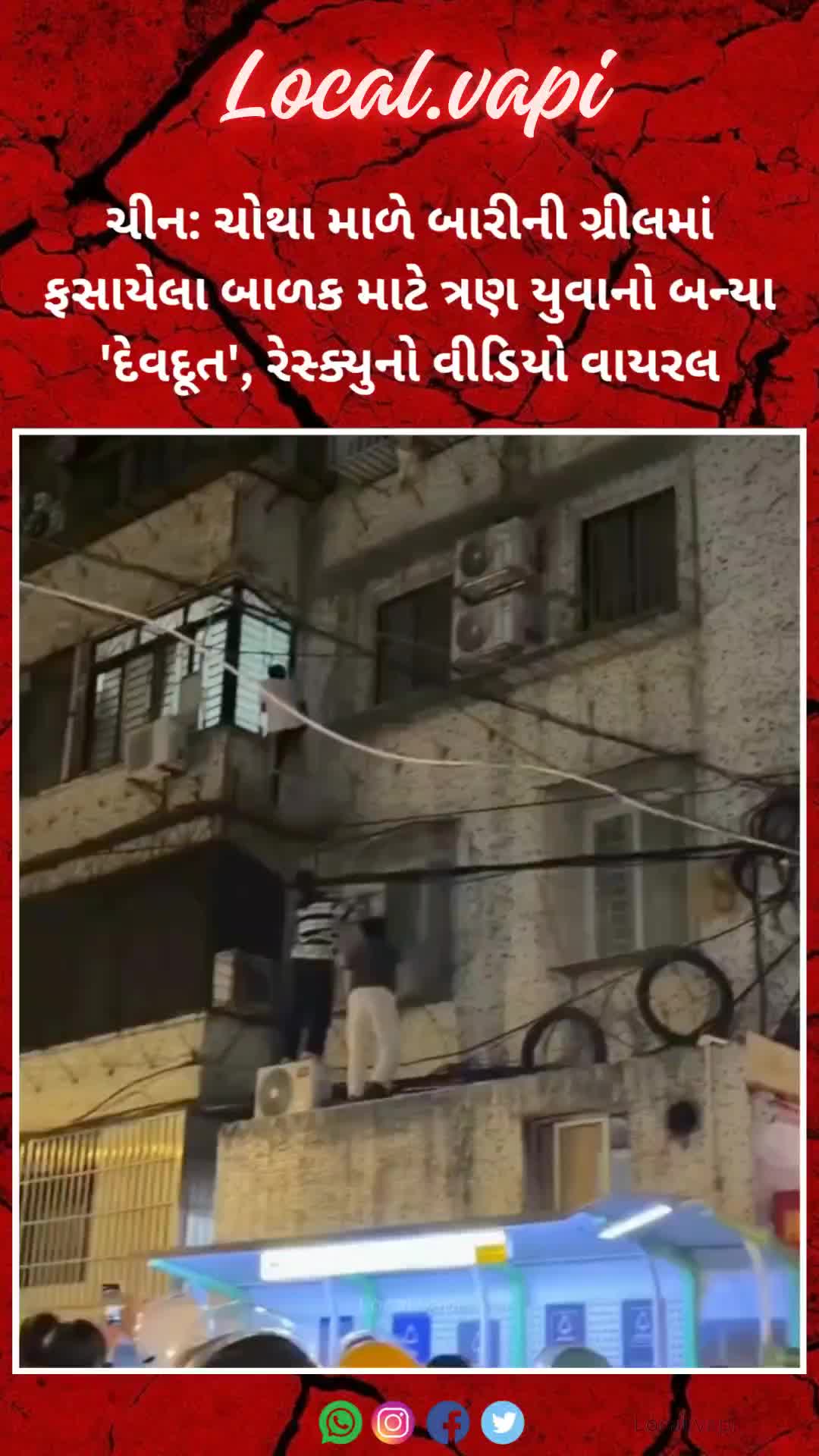 ચીન: ચોથા માળે બારીની ગ્રીલમાં ફસાયેલા બાળક માટે ત્રણ યુવાનો બન્યા 'દેવદૂત', રેસ્ક્યુનો વીડિયો વાયરલ