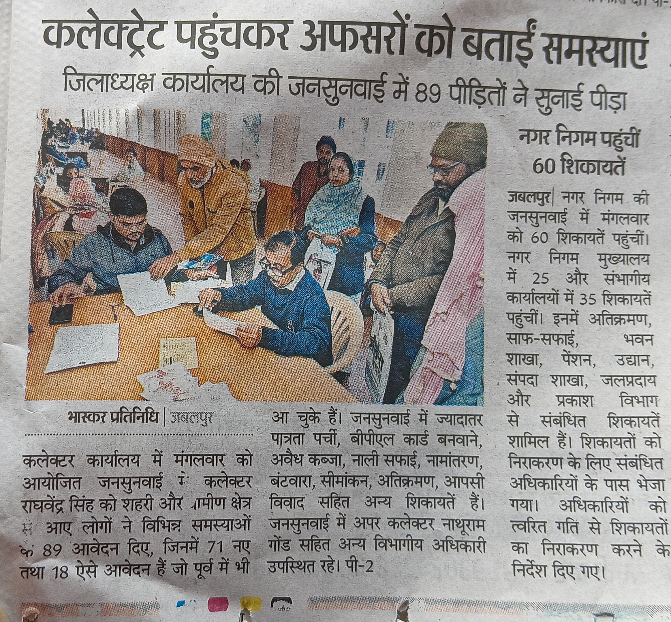 जिला कलेक्टर कार्यालय में जनसुनवाई में 89 पीड़ितों की सुनाई पीड़ा