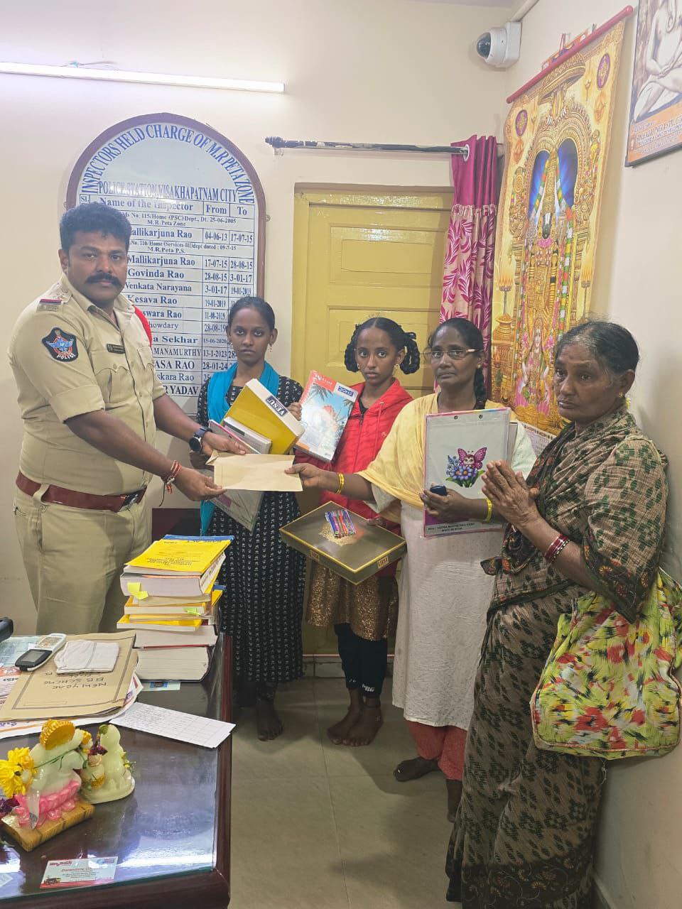 కష్టం చెప్పుకోవడానికి వెళ్లిన బాధితులకి పుస్తకాలు, చీరలు కొనిచ్చిన మహారాణిపేట సీఐ