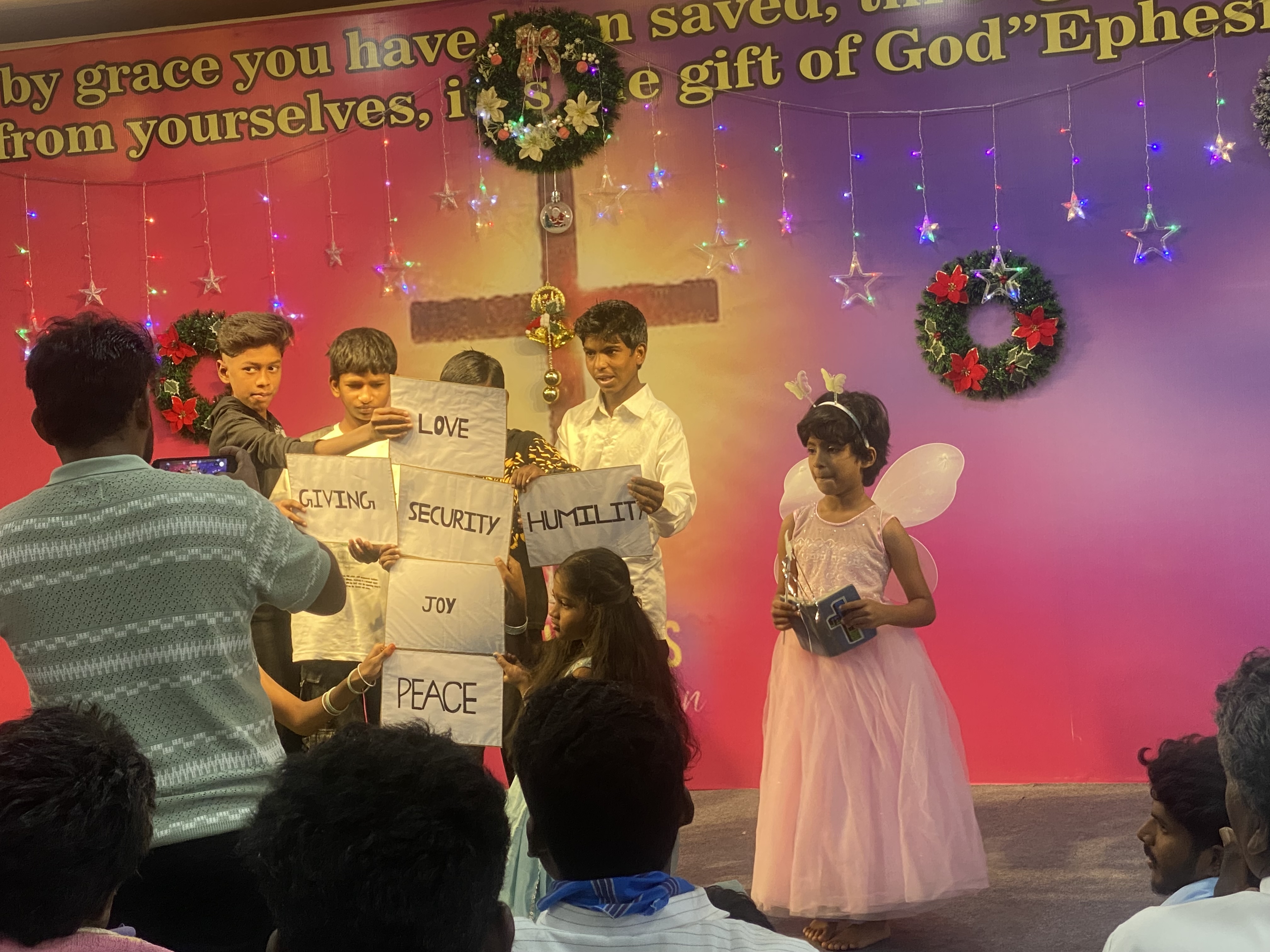 The program was organized by Pastor Parshuram, where children presented cultural performances, enacted the story of Jesus Christ, and entertained the audience with a Santa Claus act and the popular Jingle Bells song.