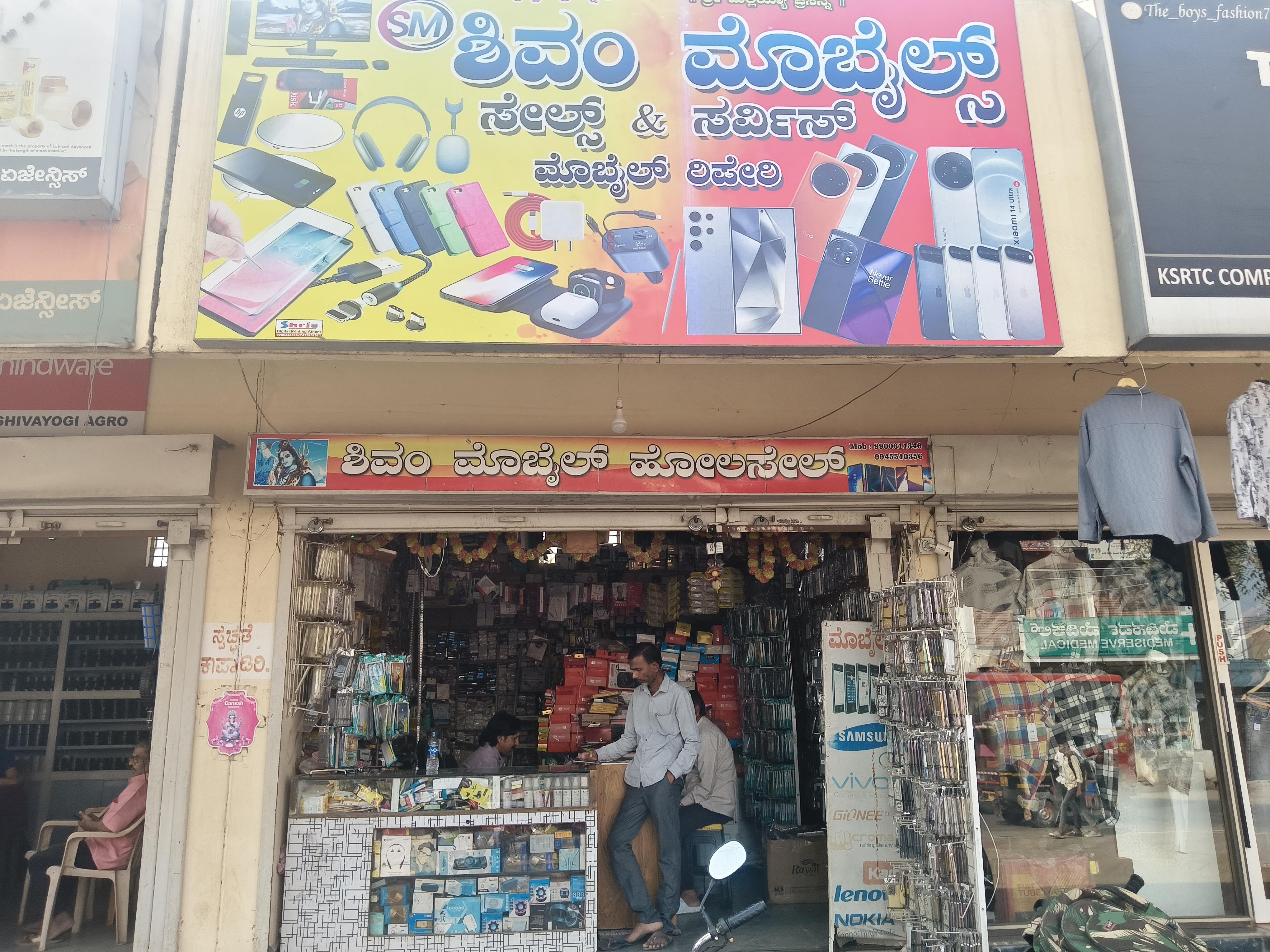 ಬೆಳಗಾವಿ ಜಿಲ್ಲೆ ಅಥಣಿ ತಾಲೂಕು ಬಸ್ ಸ್ಟ್ಯಾಂಡ್ ರೋಡ್ ಕೆಎಸ್ಆರ್ಟಿಸಿ ಕಾಂಪ್ಲೆಕ್ಸ್ ಶಿವಂ ಮೊಬೈಲ್ಸ್ ಸೇಲ್ಸ್ & ಸರ್ವಿಸ್ ಮೊಬೈಲ್ ರಿಪೇರಿ ಮೊಬೈಲ್ ಕವರ್ ಬ್ಲೂಟೂತ್ ಹೆಡ್ಫೋನ್
