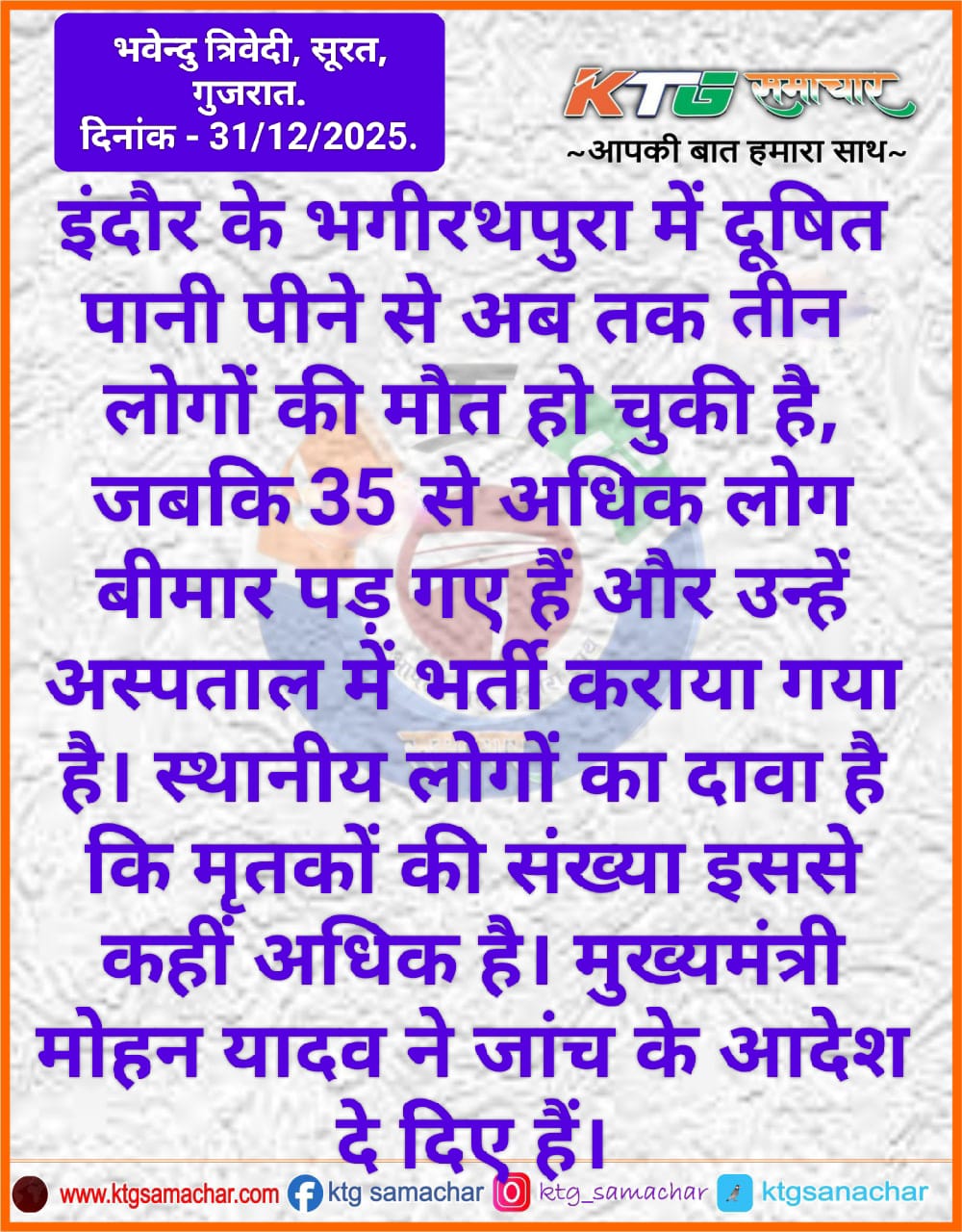 इंदौर के भगीरथपुरा में दूषित पानी पीने से अब तक तीन लोगों की मौत हो चुकी है और 35 से अधिक लोग बीमार पड़ गए हैं।
