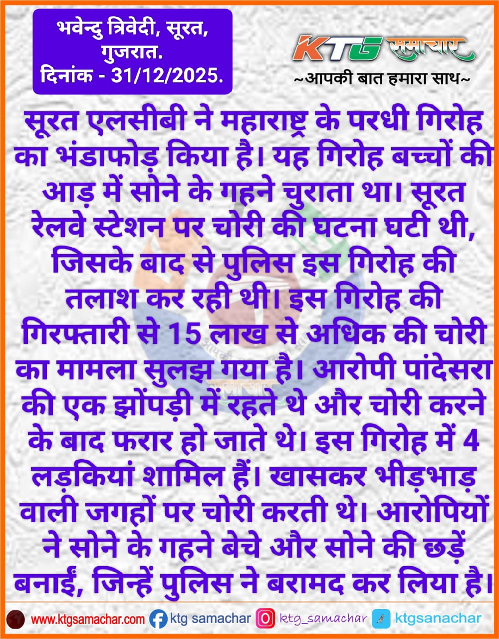 सूरत एलसीबी ने महाराष्ट्र के पारधी गिरोह का भंडाफोड़ किया है।