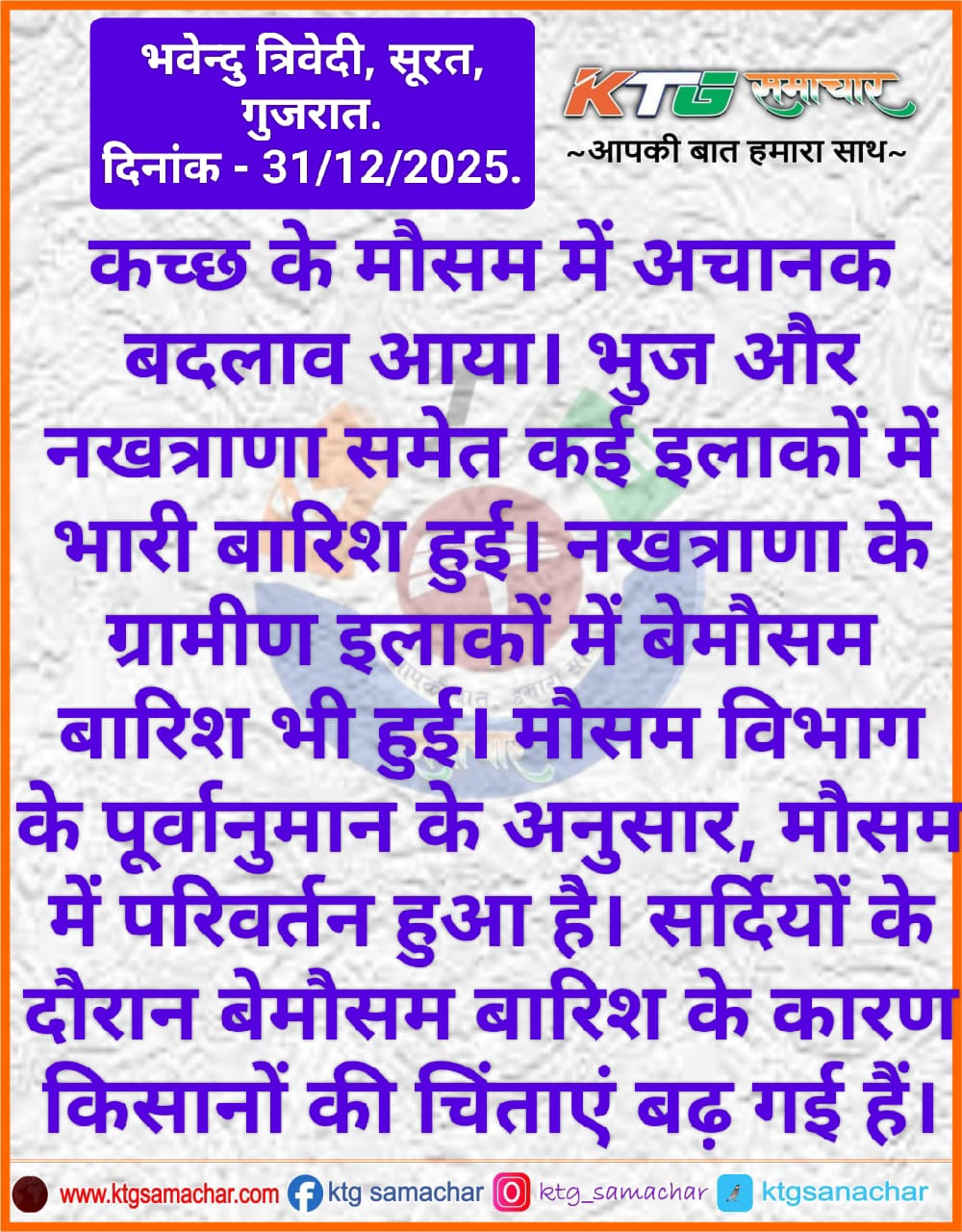 भुज और नखत्राणा समेत कई इलाकों में भारी बारिश हुई।