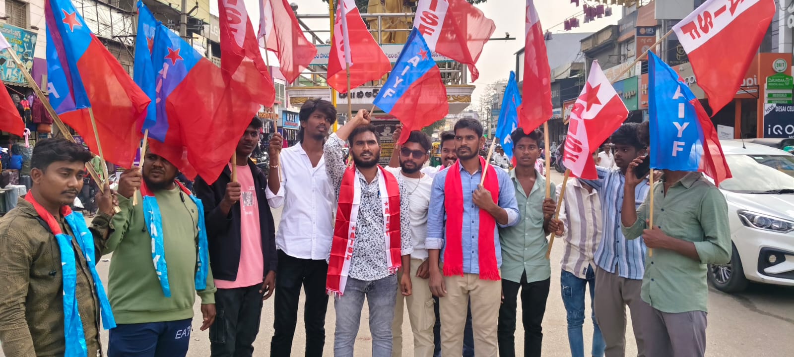 హిందూపురం అంబేద్కర్ సర్కిల్ నందు ఏఐఎస్ఎఫ్, ఏఐవైఎఫ్ నాయకులు నిరసన