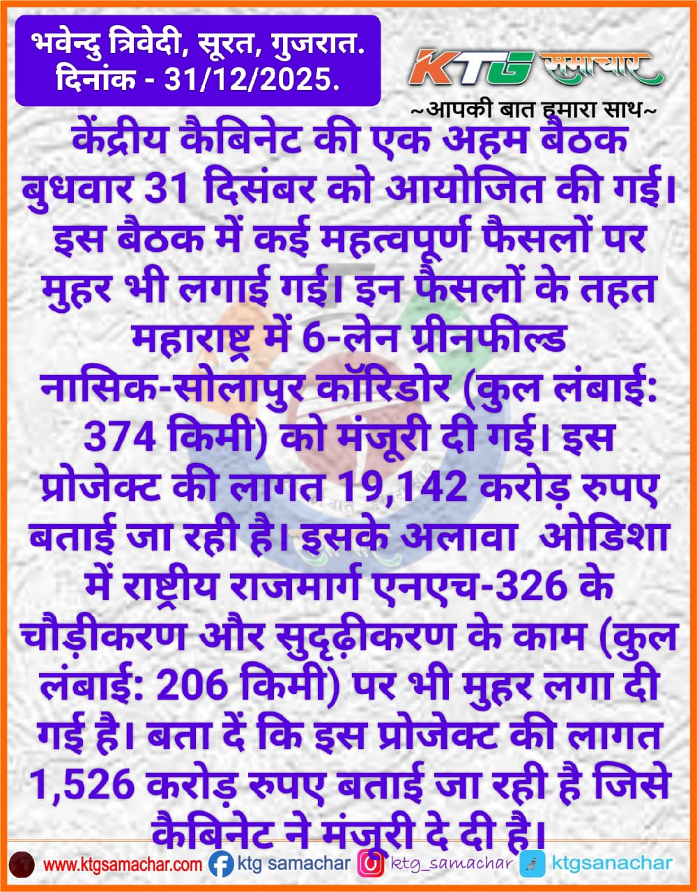 आज 20,668 करोड रुपए की दो राजमार्ग परियोजनाओं को मंजूरी दी है। नासिक से सोलापुर और मोहना से कोरापुट के दो हाईवे प्रोजेक्ट।