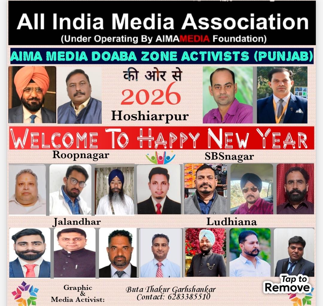 "AIMA MEDIA ACTIVISTS DOABA ZONE PUNJAB" सभी देश वासियों को 2026 के शुभ आगमन पर अपनी शुभकामनाएं भेंट करता है 🙏