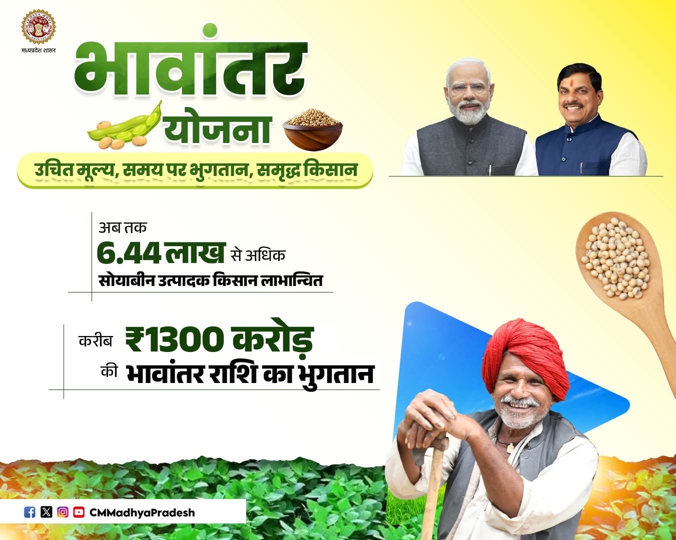 ⏹️लगभग ₹1300 करोड़ की भावांतर राशि का भुगतान