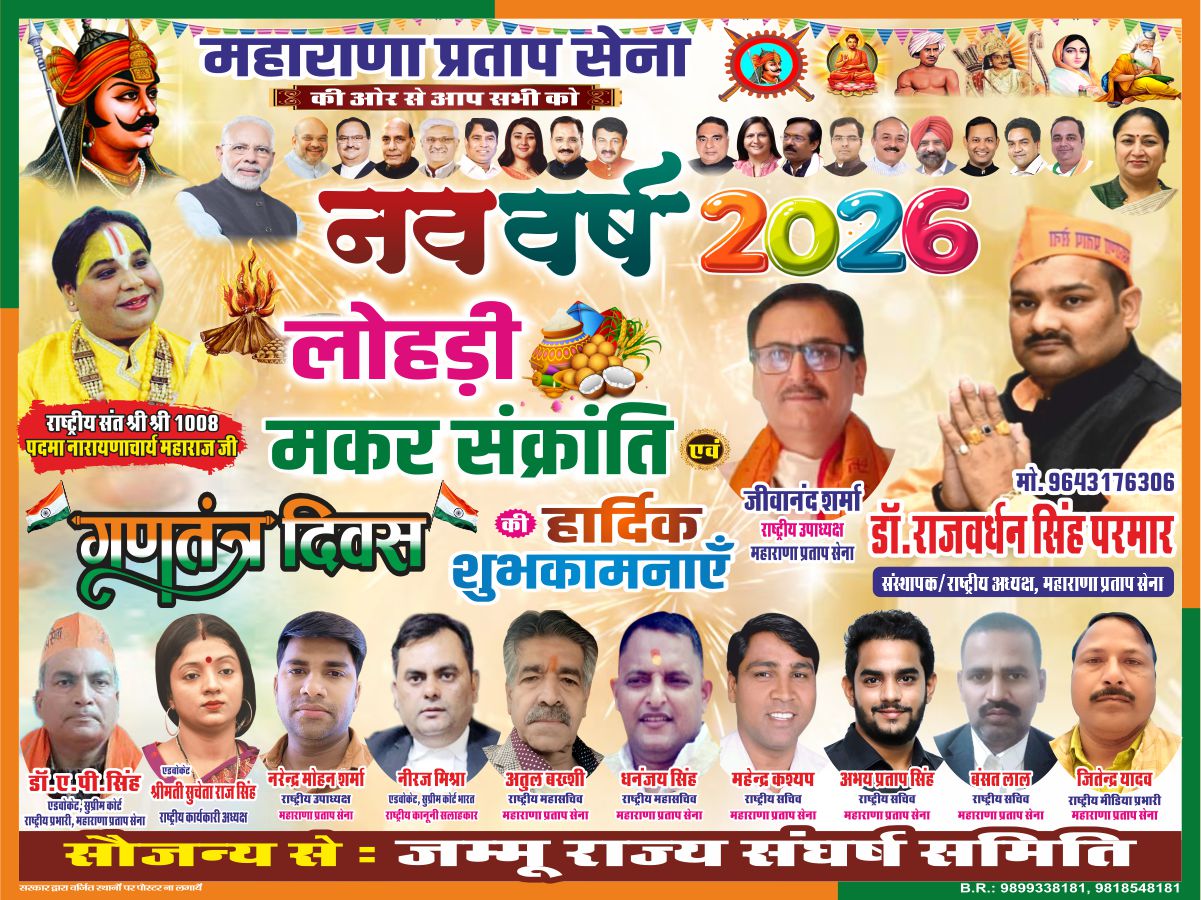 नव वर्ष 2026 की हार्दिक शुभकामनाएं। डॉ. राजवर्धन सिंह परमार, संस्थापक व राष्ट्रीय अध्यक्ष, महाराणा प्रताप सेना।