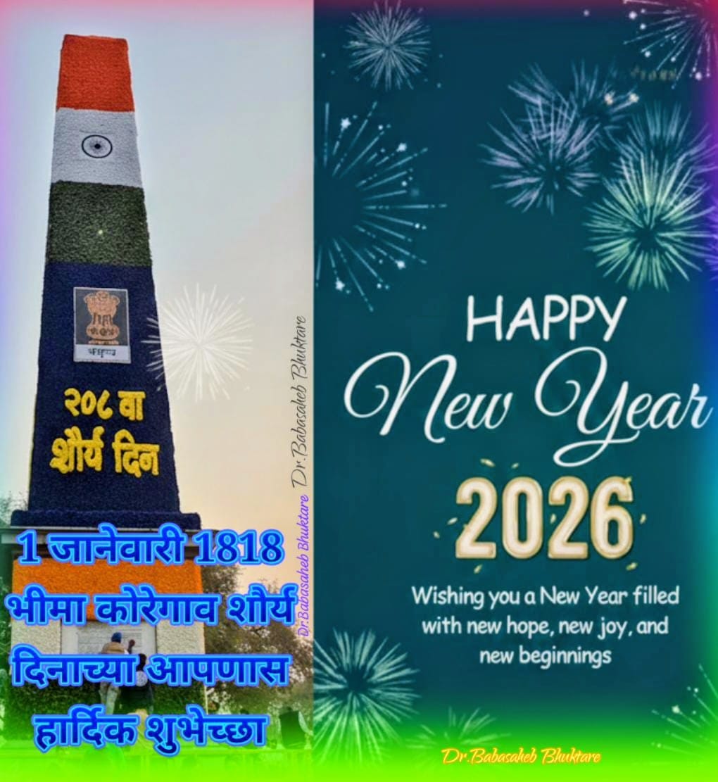 _एक जानेवारी भिमा कोरेगाव शौर्य दिनानिमित्त त्या पाचशे वीरांना मानवंदना व तसेच नवीन वर्षाच्या सर्वांना हार्दिक हार्दिक शुभेच्छा आणि मंगलमय कामना..!!_