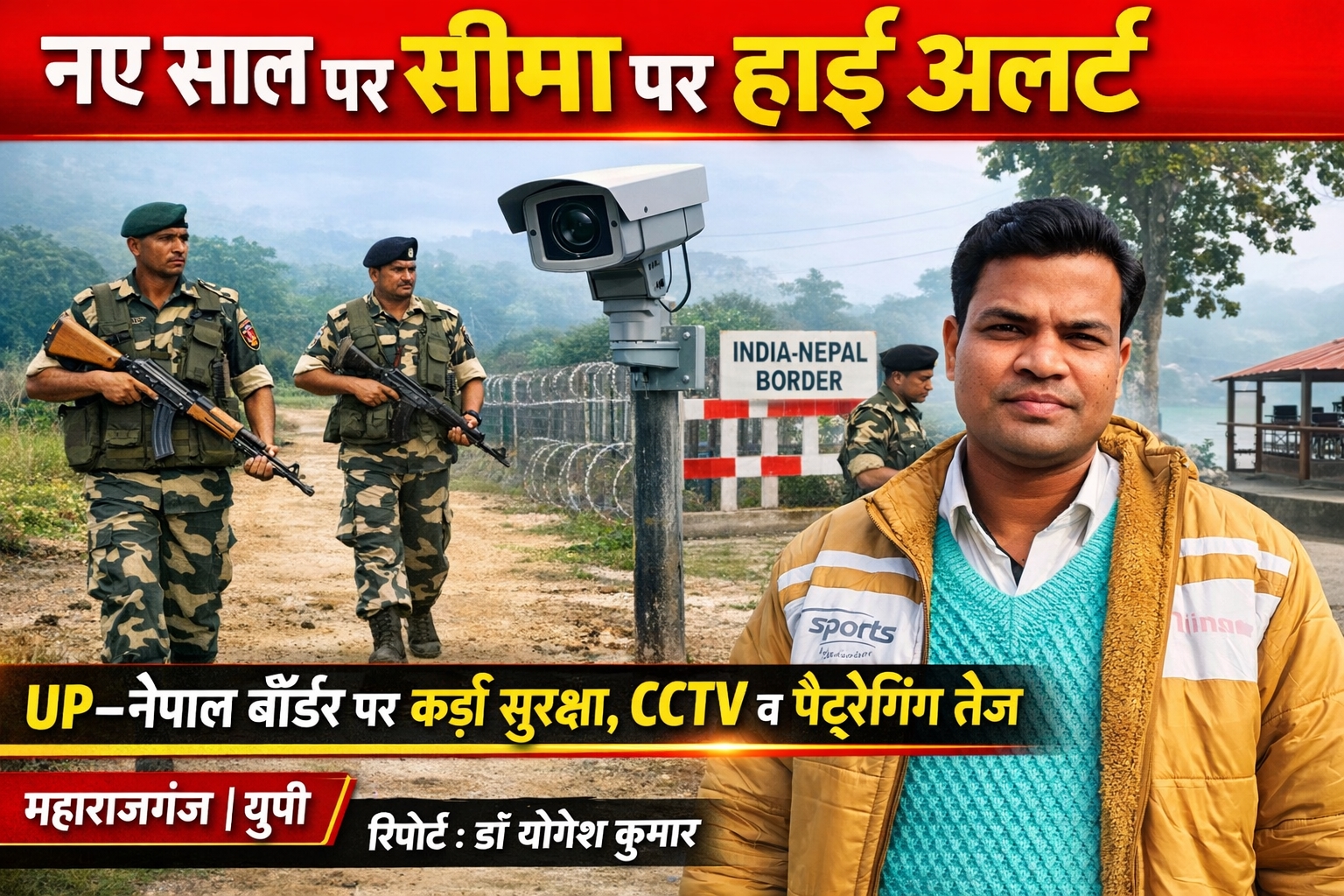 उत्तर प्रदेश–नेपाल अंतरराष्ट्रीय सीमा पर नववर्ष 2026 के मद्देनज़र सुरक्षा व्यवस्था को और अधिक सख़्त कर दिया गया है। महाराजगंज जिला सहित सीमावर्ती सात जिलों में पुलिस, एसएसबी और खुफिया एजेंसियों की अतिरिक्त तैनाती की गई है।