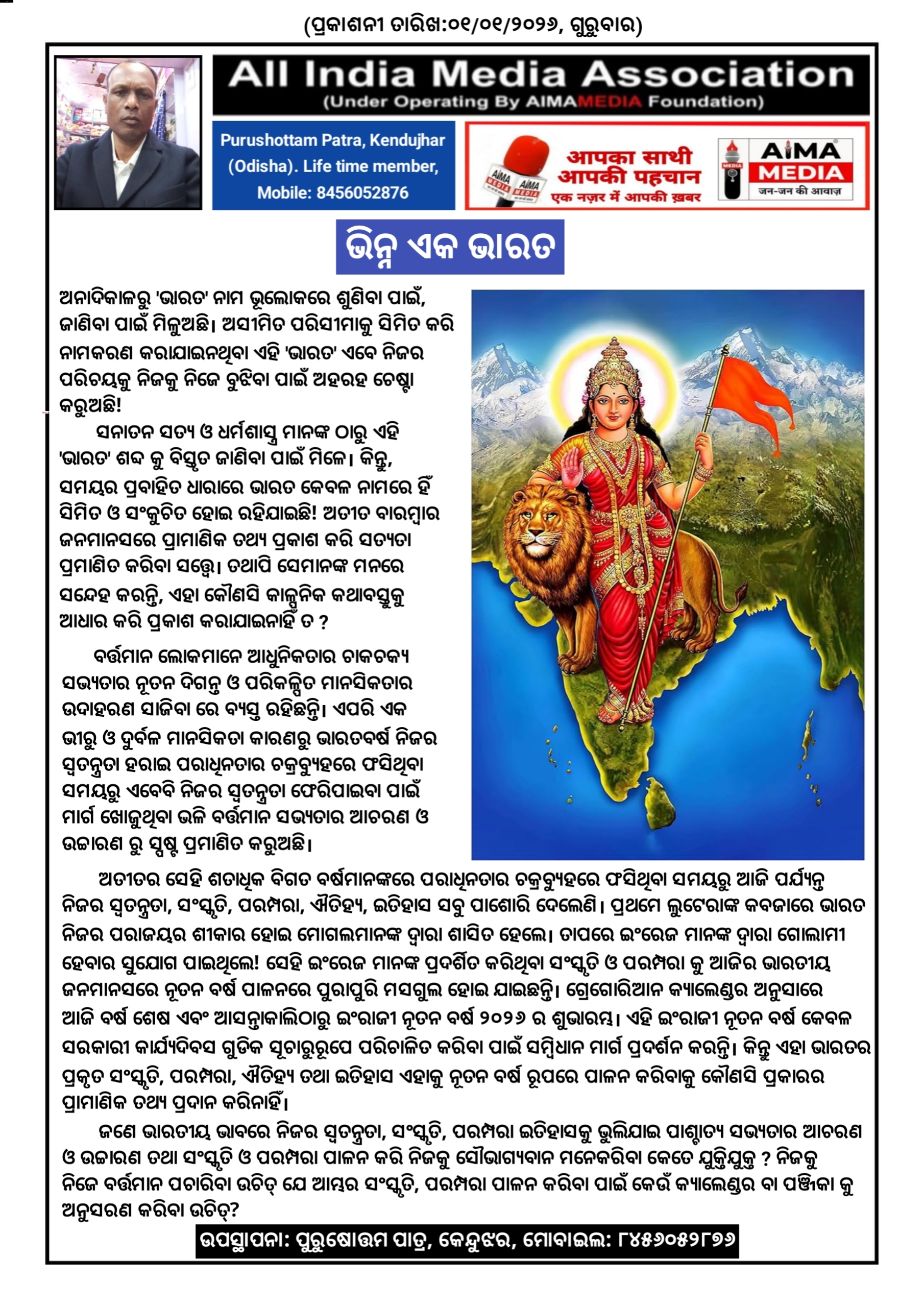 ଜଣେ ଭାରତୀୟ ଭାବରେ ନିଜର ସ୍ବତନ୍ତ୍ରତା, ସଂସ୍କୃତି, ପରମ୍ପରା ଇତିହାସକୁ ଭୁଲିଯାଇ ପାଶ୍ଚାତ୍ୟ ସଭ୍ୟତାର ଆଚରଣ ଓ ଉଚ୍ଚାରଣ ତଥା ସଂସ୍କୃତି ଓ ପରମ୍ପରା ପାଳନ କରି ନିଜକୁ ସୌଭାଗ୍ଯବାନ ମନେକରିବା କେତେ ଯୁକ୍ତିଯୁକ୍ତ ? ନିଜକୁ ନିଜେ ବର୍ତ୍ତମାନ ପଚାରିବା ଉଚିତ୍ ଯେ ଆମ୍ଭର ସଂସ୍କୃତି, ପରମ୍ପରା ପାଳନ କରିବା ପାଇଁ କେଉଁ କ୍ୟାଲେଣ୍ଡର ବା ପଞ୍ଜିକା କୁ ଅନୁସରଣ କରିବା ଉଚିତ୍?