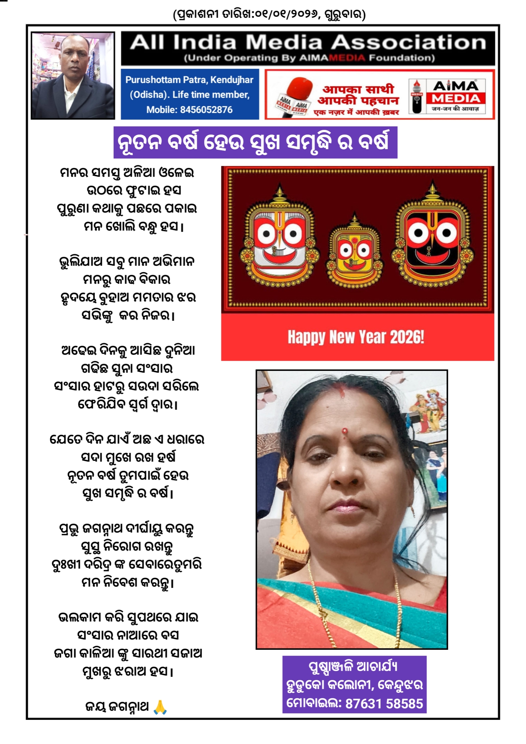 ନୂତନ ବର୍ଷ ହେଉ ସୁଖ ସମୃଦ୍ଧି ର ବର୍ଷ - ପୁଷ୍ପାଞ୍ଜଳି ଆଚାର୍ଯ୍ୟ ଙ୍କ ଦ୍ଵାରା ରଚିତ କବିତା।
