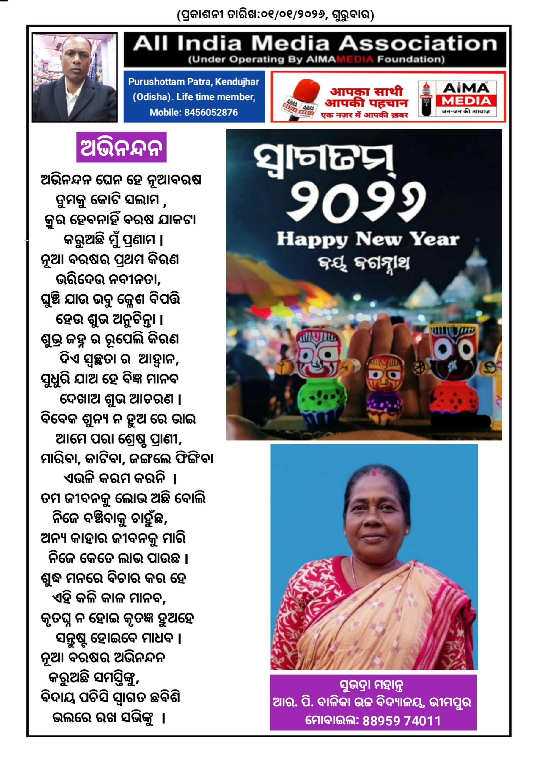 ଅଭିନନ୍ଦନ - ସୁଭଦ୍ରା ମହାନ୍ତ ଙ୍କ ଦ୍ଵାରା ରଚିତ କବିତା।