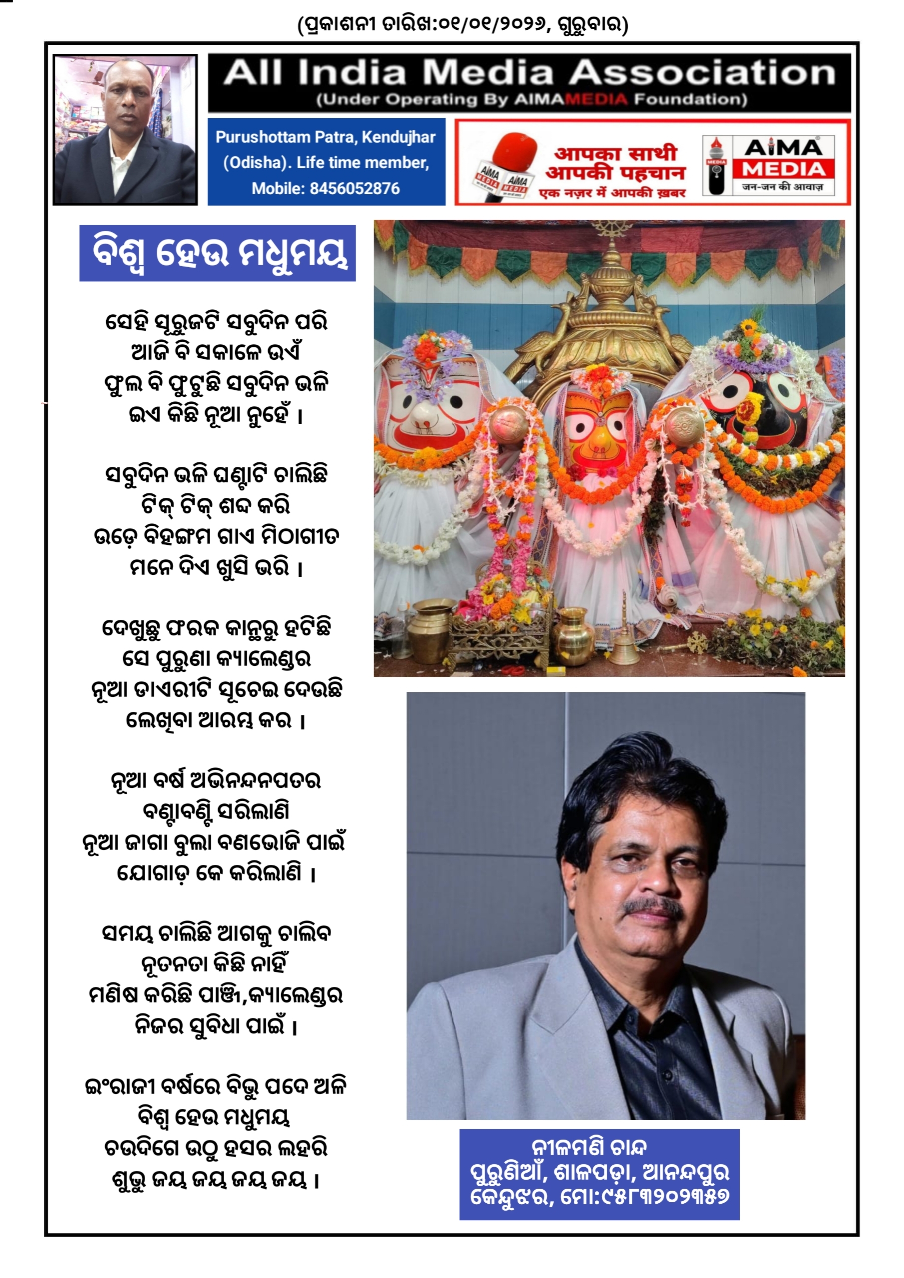 ବିଶ୍ୱ ହେଉ ମଧୁମୟ - ନୀଳମଣି ଚାନ୍ଦ ଙ୍କ ଦ୍ଵାରା ରଚିତ କବିତା।