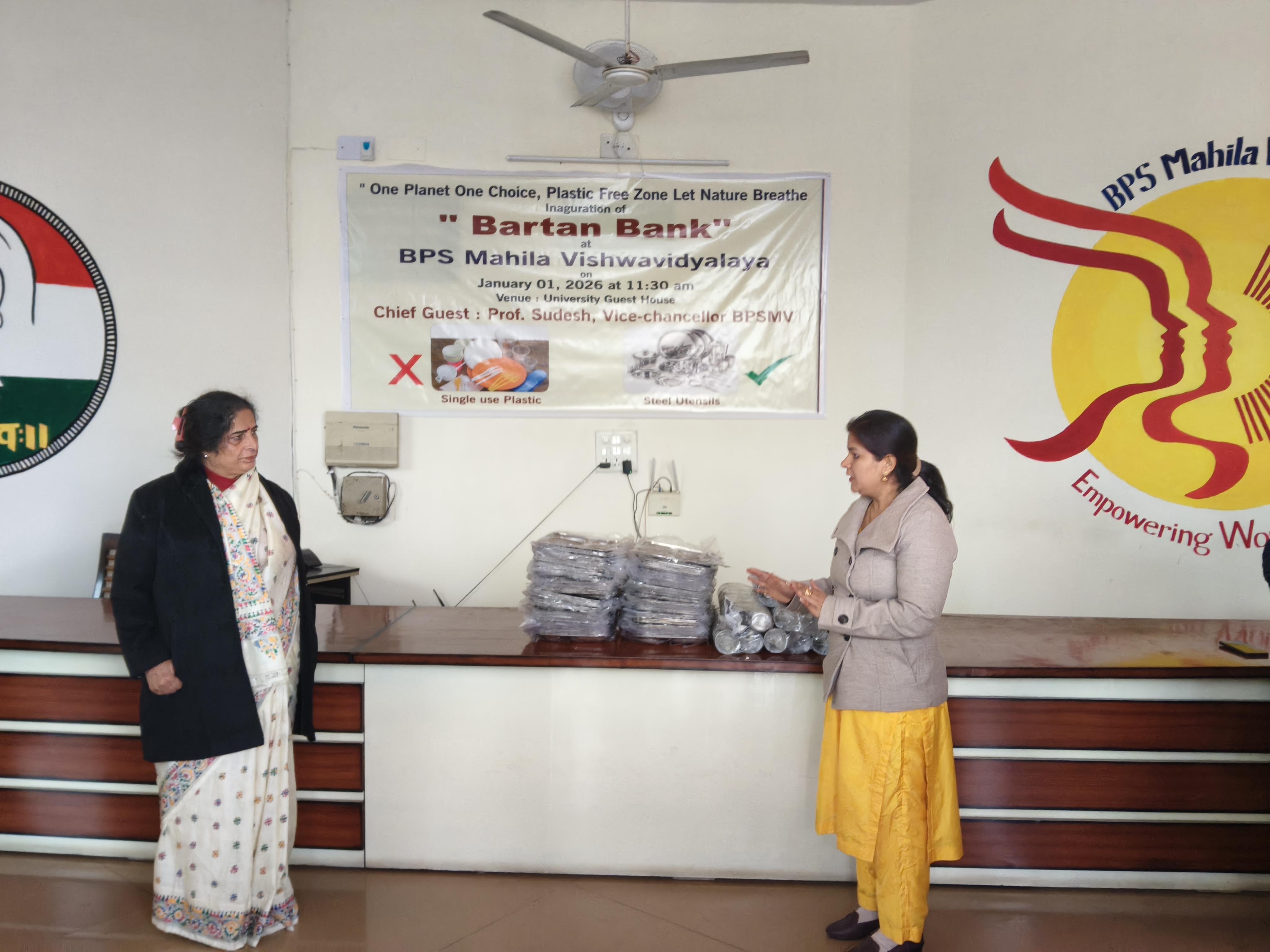 भगत फूल सिंह महिला विश्वविद्यालय, खानपुर कलां में सिंगल यूज़ प्लास्टिक मुक्त परिसर बनाने की दिशा में एक और महत्वपूर्ण कदम उठाया गया है। विश्वविद्यालय स्थित अंतरराष्ट्रीय गेस्ट हाउस परिसर में बर्तन बैंक की स्थापना की गई, जिसका उद्देश्य प्लास्टिक एवं डिस्पोजल सामग्री के उपयोग को न्यूनतम करना है। कार्यक्रम का आयोजन डॉ शीला मलिक ने किया जबकि उद्घाटन महिला विश्वविद्यालय की कुलपति प्रो सुदेश ने किया।