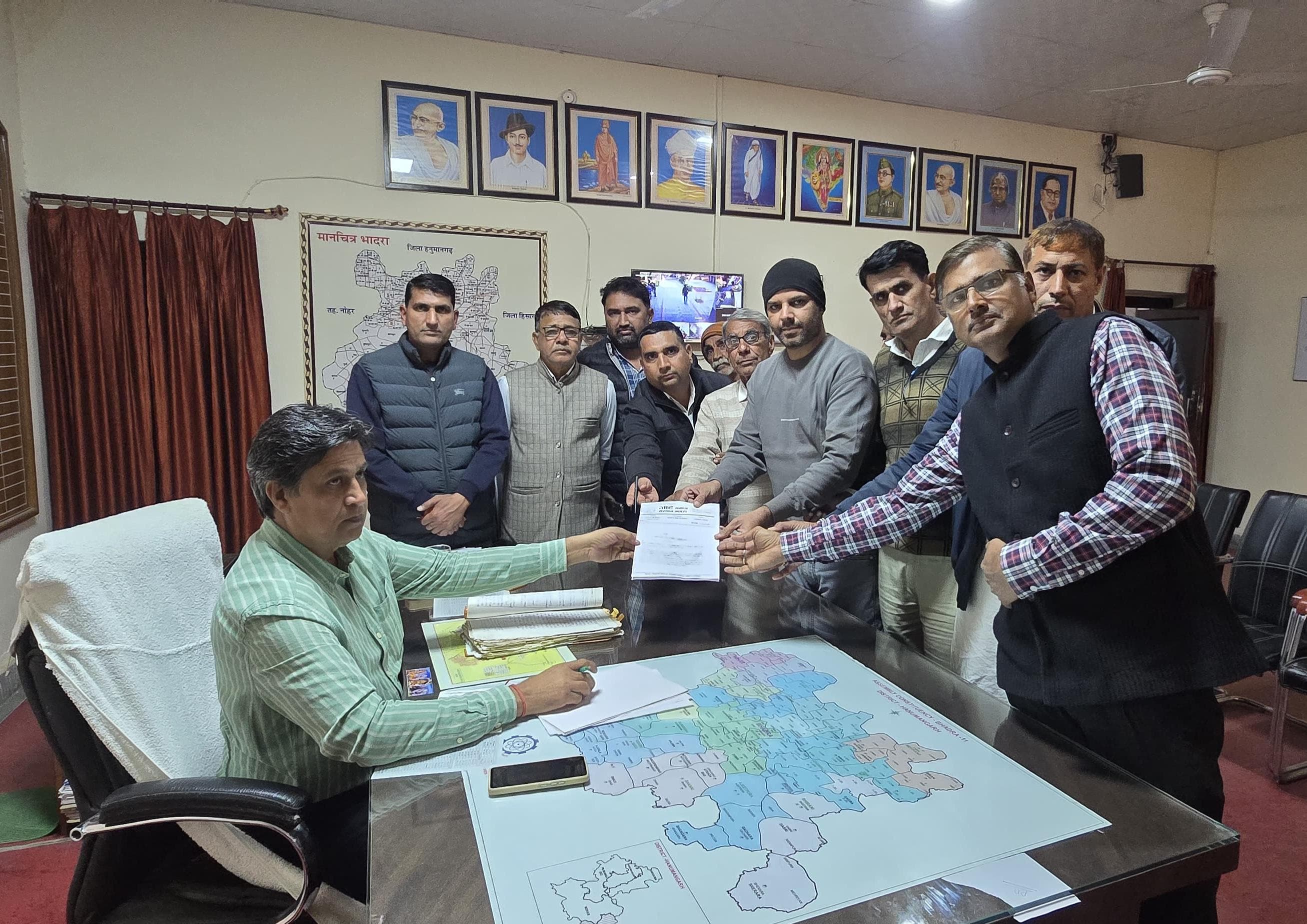 ज्ञापन सौंपते समय श्री प्रताप बेनीवाल, श्री धर्मपाल गोदारा, विरेन्द्र बेनीवाल, डॉ आनन्द मोठसरा, एडवोकेट विजेन्द्र बेनीवाल, एडवोकेट प्रभुराम गोदारा, सुनील बेनीवाल निनाण, सुभाष थोरी, अजीत सुरतपुरा आदि उपस्थित रहे ।