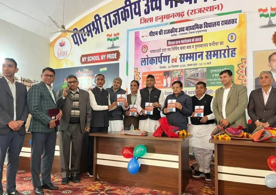 पीएम श्री राजकीय विद्यालय में लाइब्रेरी व कक्षा कक्ष का लोकार्पण भामाशाहों का किया सम्मान