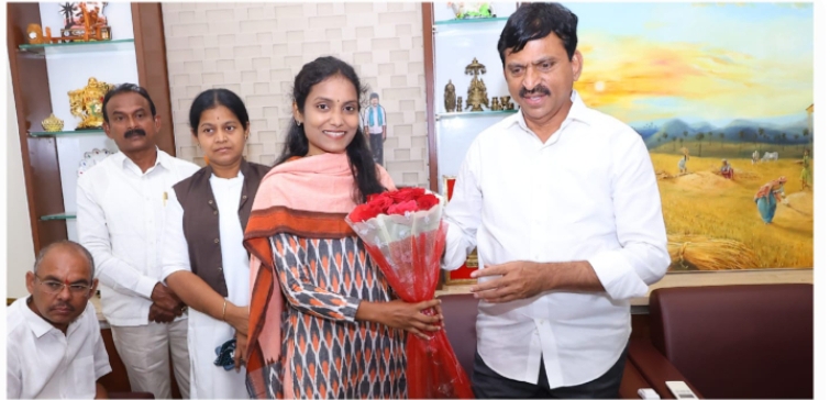 AIMA.01 మంత్రి పొంగులేటి శ్రీనివాస్ గారిని మరియు ఖమ్మం జిల్లా ఎంపీ గారిని మర్యాదపూర్వకంగా కలిసి నూతన సంవత్సర శుభాకాంక్షలు తెలిపిన కాంగ్రెస్ నాయకురాలు.
