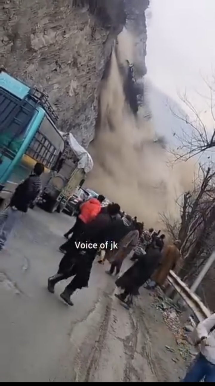 #A landslide in Baramulla's eco park area has blocked the national highway, halting transport vehicles, but no casualties have been reported. The massive debris flow has caused panic among locals,