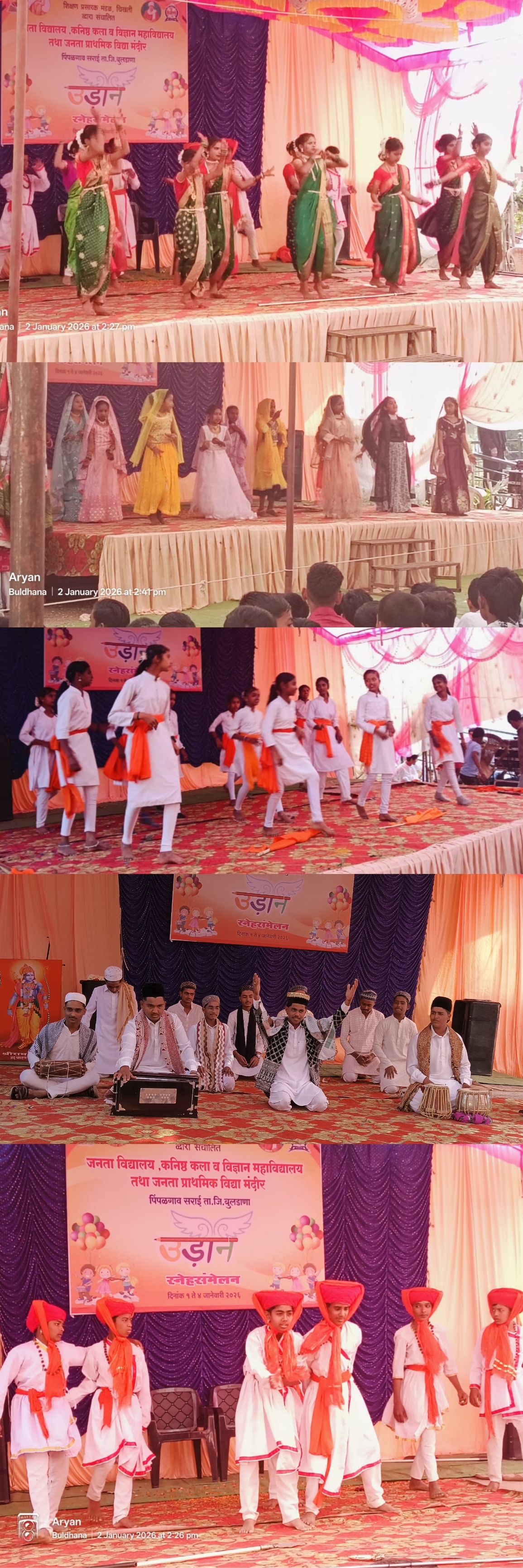 जनता विद्यालय पिंपळगाव सराई येथे सुरू असलेल्या ‘उड्डाण’ या वार्षिक स्नेहसंमेलनाच्या द्वितीय पुष्पाचे आयोजन विविध सांस्कृतिक कार्यक्रम, शैक्षणिक प्रदर्शन आणि विद्यार्थ्यांच्या कलागुणांच्या प्रभावी सादरीकरणाने अत्यंत उत्साहपूर्ण वातावरणात पार पडले. विद्यार्थ्यांच्या सहभागाने व पालकांच्या उत्स्फूर्त प्रतिसादामुळे संपूर्ण परिसर आनंद व चैतन्याने भारलेला दिसून आला.