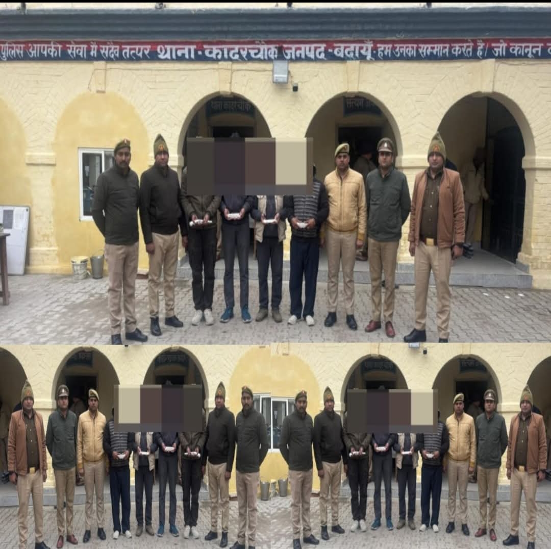 बदायूं थाना कादरचौक पुलिस द्वारा मुखबिर की सूचना पर ग्राम राजीव नगर पानी की टंकी के पास से 04 अभियुक्तगण 1.अफजाल पुत्र सिदाकतुल्ला उर्फ अच्छन नि0 मो0 घास बाजार कस्वा ककराला थाना अलापुर जिला बदायूँ 2. मुकेश पुत्र गनपत निवासी ग्राम धनूपुरा थाना कादरचौक बदायू 3. शंकर पुत्र बाबूराम निवासी ग्राम धनुपुरा थाना कादरचौक बदायूं 4. विजय प्रताप पुत्र गोपी निवासी ग्राम धनूपुरा थाना कादरचौक बदायूं को चोरी की योजना बनाते समय अभियुक्तगणो से एक अदद तमंचा 315 बोर मय 02 अदद जिन्दा कारतूस नाजायज 315 बोर व 03 अदद नाजायद चाकू सहित गिरफ्तार कर उल्लेखनीय सफलता प्राप्त की है ।अभि0 गण की गिरफ्तारी व बरामदगी के आधार पर थाना कादरचौक पर मु0अ0सं0 02/2026 धारा 313 BNS व धारा 3/25 (1-B)a A. Act व 4/25 A Act पंजीकृत कर विधिक कार्यवाही कर माननीय न्यायालय के समक्ष पेश किया गया ।