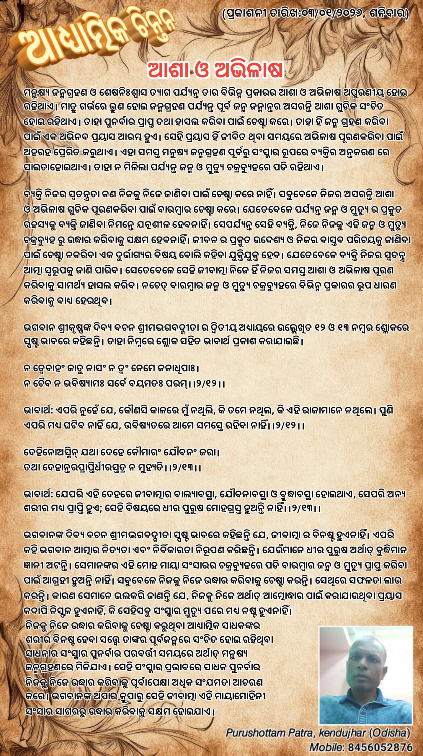 ଉପସ୍ଥାପନା: ପୁରୁଷୋତ୍ତମ ପାତ୍ର, କେନ୍ଦୁଝର, ମୋବାଇଲ: ୮୪୫୬୦୫୨୮୭୬