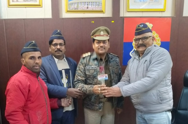 राष्ट्रीय सैनिक संस्था जिला ईकाई हापुड़ के तत्वावधान में प्रदेश प्रवक्ता व हापुड़ के जिला अध्यक्ष ज्ञानेन्द्र त्यागी के नेतृत्व में हापुड़ कोतवाली प्रभारी विनोद कुमार पांडेय व थाना अध्यक्ष हापुड़ देहात नीरज कुमार को पद भार ग्रहण करने पर पुष्प भेंट कर उनके उज्जवल भविष्य की कामना करते हुए नववर्ष की हार्दिक शुभकामनाएं दी इस अवसर पर संस्था की महिला ब्रिगेड की अध्यक्ष मोनिका त्यागी, जिला सचिव मुकेश प्रजापति, जिला प्रवक्ता गुलशन त्यागी, जिला सूचना प्रसारण मंत्री श्याम वर्मा मौजूद रहे