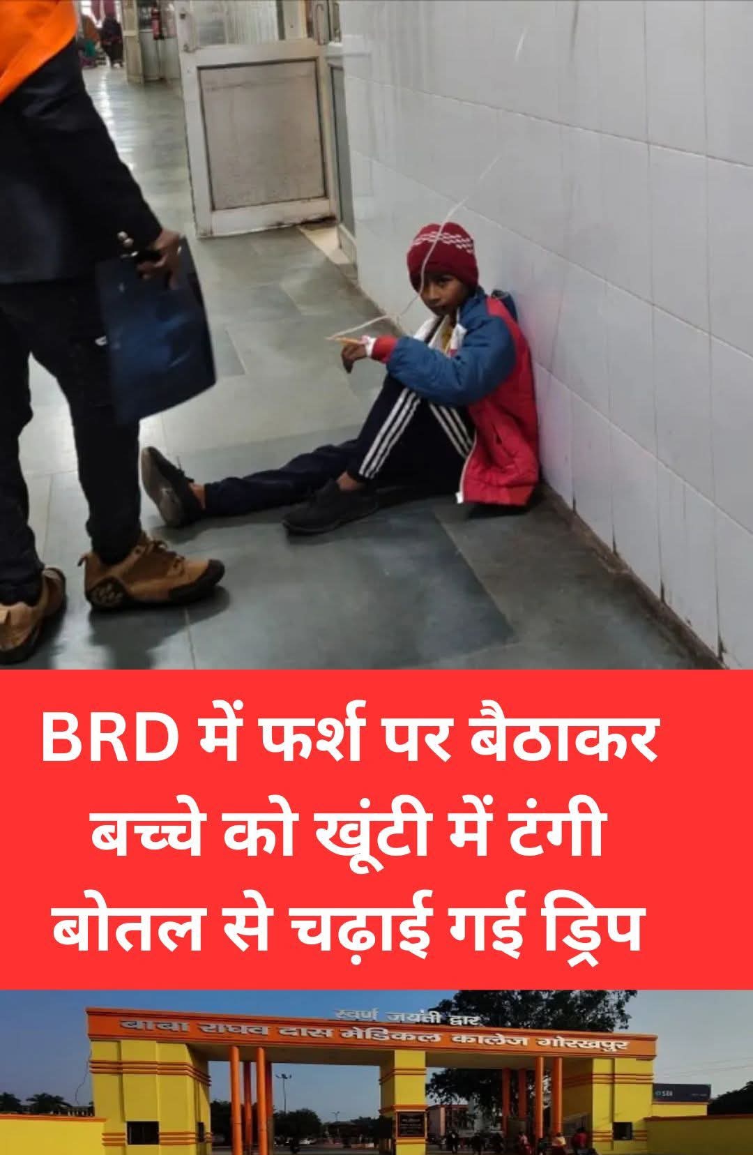 गोरखपुर : BRD में फर्श पर बैठाकर बच्चे को खूंटी में टंगी बोतल से चढ़ाई गई ड्रिप, बहुत कुछ बोल रही हैं।