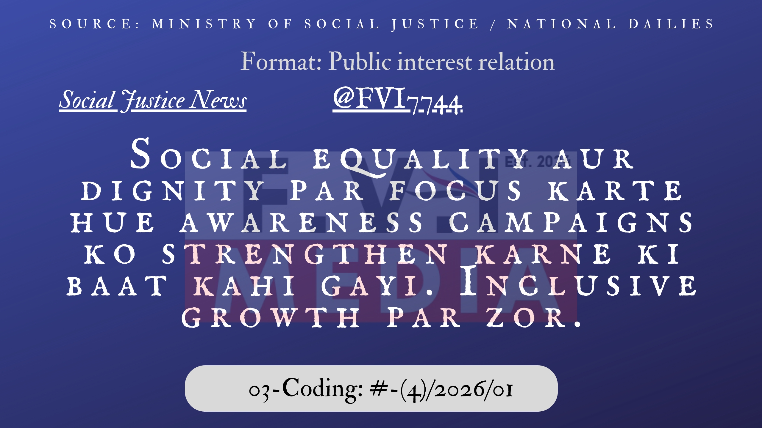Social equality aur dignity par focus karte hue awareness campaigns ko strengthen karne ki baat kahi gayi. Inclusive growth par zor.