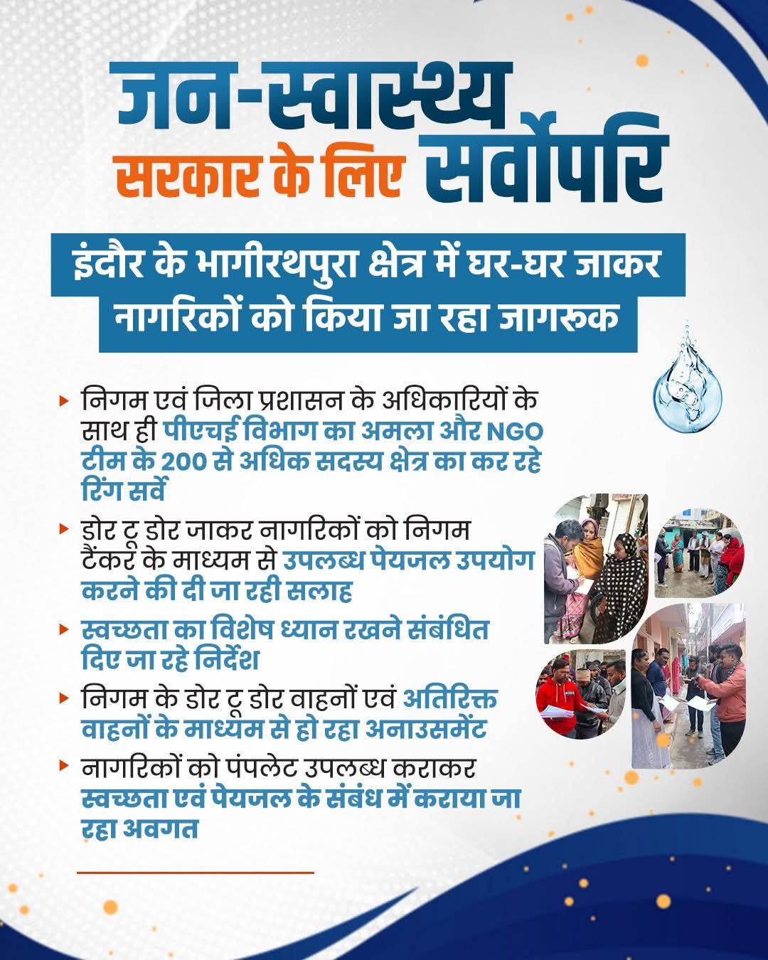 इंदौर के भागीरथपुरा क्षेत्र में घर-घर जाकर नागरिकों को किया जा रहा जागरूक...