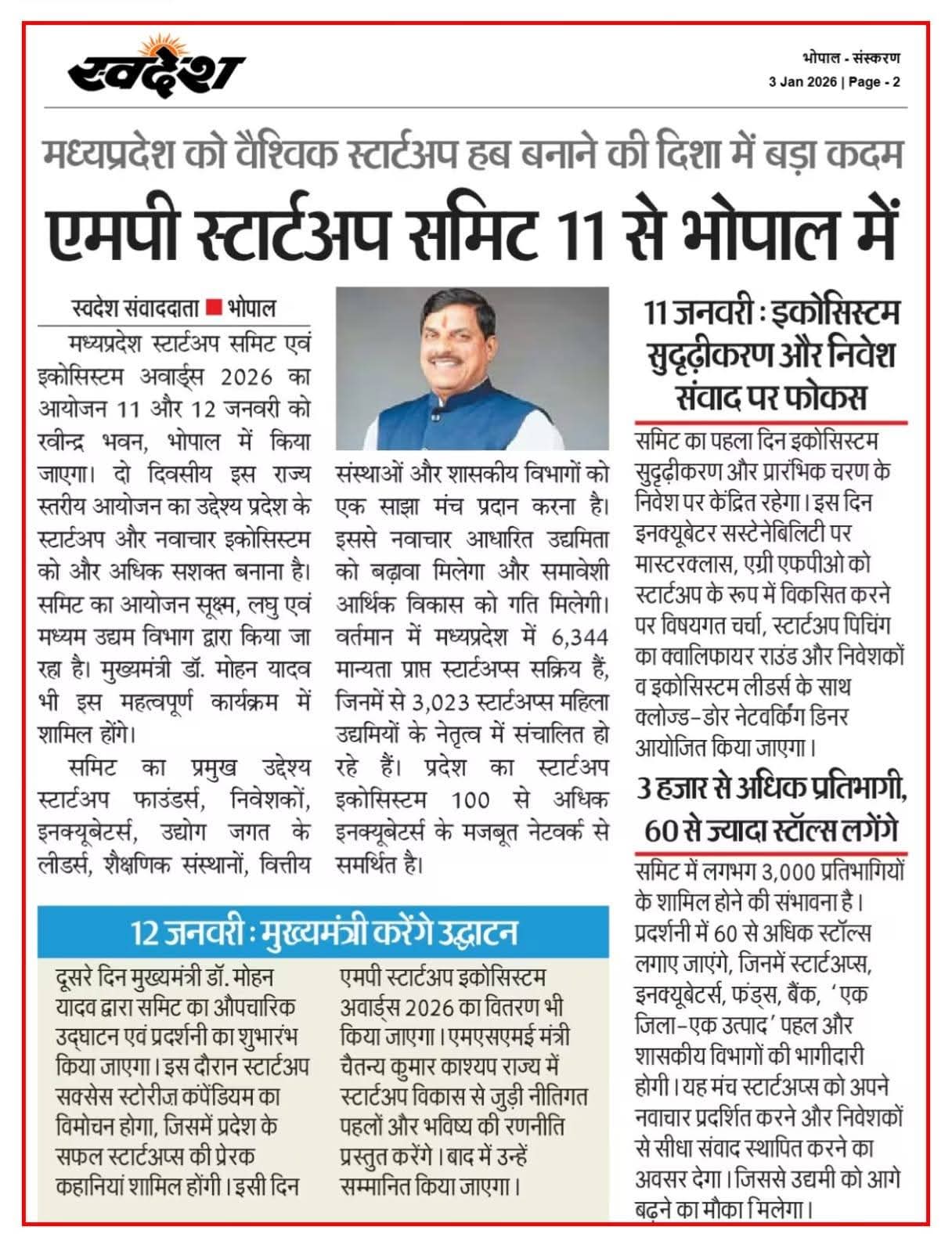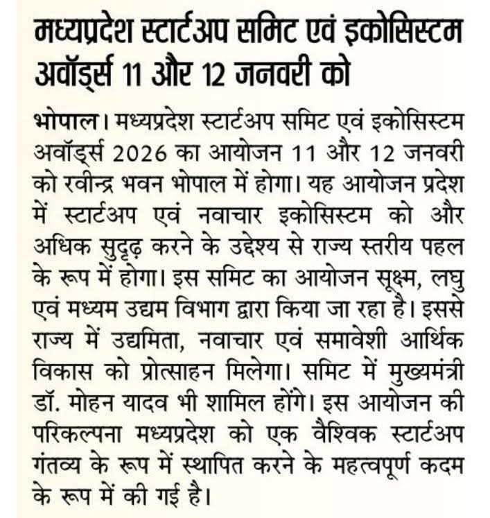 एमपी स्टार्टअप समिट 11 जनवरी से भोपाल में