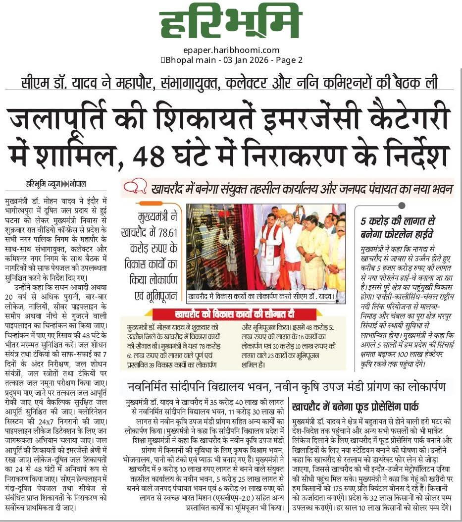 जलापूर्ति की शिकायतें इमरजेंसी कैटेगरी में शामिल, 48 घंटे में निराकरण के निर्देश