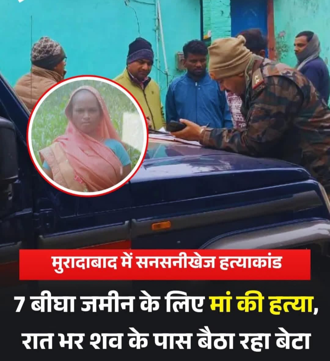 यूपी के मुरादाबाद। पाकबड़ा क्षेत्र के गांव उमरी में सात बीघा जमीन बेचने के विरोध में एक महिला की शुक्रवार रात डंडे से पीट-पीटकर हत्या कर दी गई। पूरी रात शव घर में पड़ा रहा। आरोपित भी मां की हत्या करने के बाद शव के पास ही पूरी रात बैठा रहा। पुलिस ने आरोपित को हिरासत में लेकर शव पोस्टमार्टम के लिए भेज दिया। गांव उमरी निवासी ऋषिपाल की कुछ साल पहले मृत्यु हो गई थी। ऋषिपाल के हिस्से की जमीन उनकी पत्नी सावित्री के नाम पर आ गई थी। इनके एक बेटा और एक बेटी है। बेटी की शादी हो गई। बेटे कपिल की भी शादी हो चुकी है। कपिल मां के नाम दर्ज जमीन को बेचना चाहता था। इसी बात को लेकर मां बेटे में विवाद रहता था। शुक्रवार की शाम इसी बात को लेकर फिर से मां बेटे में विवाद हो गया। शोर शराबा सुनकर आसपास के लोग पहुंचे और विवाद शांत कराया। इसके बाद बेटे ने देर रात फिर से मां से जमीन बेचने के लिए कहा तो उन्होंने मना कर दिया। इसी बीच आरोपित ने डंडे से मां पर हमला कर दिया। सिर पर डंडे से वार किए। इससे उनकी मौके पर ही मृत्यु हो गई। मां की हत्या करने के बाद आरोपित शव के बराबर में ही बैठ गया। पूरी रात आरोपित शव के बराबर में बैठा रहा। शनिवार सुबह मामले की जानकारी के बाद पुलिस मौके पर पहुंची। पुलिस ने आरोपित कपिल को गिरफ्तार कर लिया।