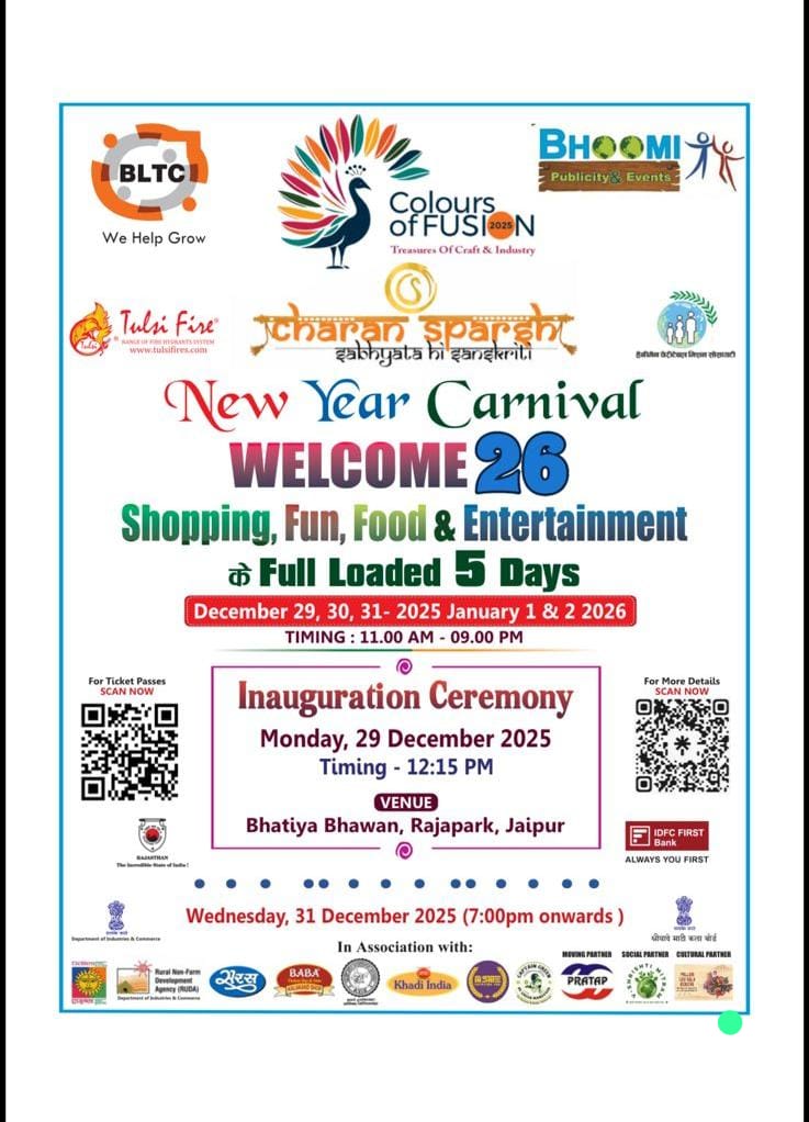 अशोक परनामी जी पूर्व प्रदेशाध्यक्ष भाजपा राजस्थान,सुमंत सिंह जागावत जी चैयरमैन एमएसएमई पीसीआई राजस्थान, जेडी माहेश्वरी जी और नरेंद्र कुमार जैन आपकी गरिमामयी उपस्थिति के लिए धन्यवाद।प्रोग्राम के आयोजन कर्ता कलर्स ऑफ़ फ्यूज़न की पूरी टीम को धन्यवाद जिन्होंने इतना अच्छा आयोजन किया और श्री शिल्पी आर पुरोहित जी जॉइंड डायरेक्टर उद्योग विभाग जयपुर जिनके सहयोग और मार्गदर्शन में पूरा प्रोग्राम हुआ राजस्थानी लोक नृत्य की प्रस्तुतियाँ प्रोग्राम को चार चांद लगाने का कार्य किया