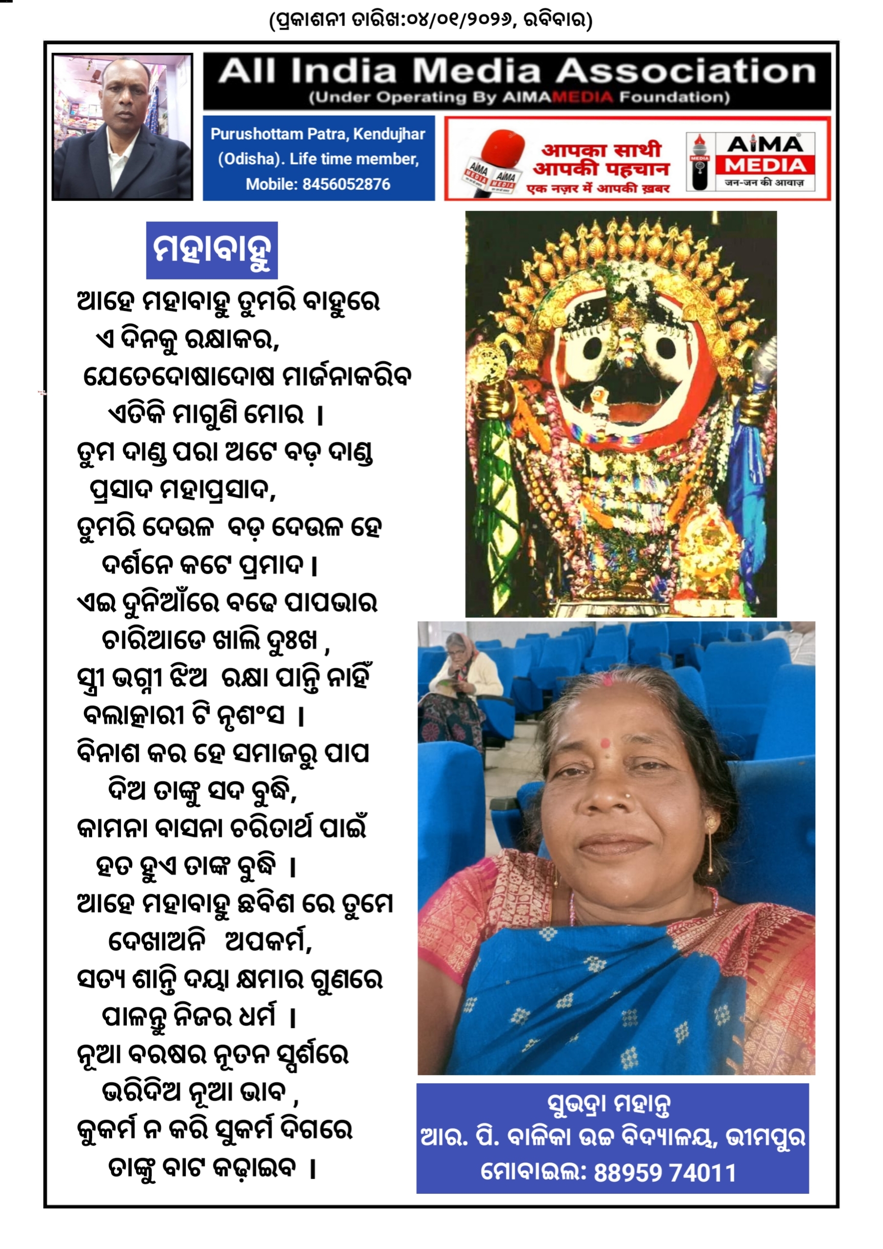ମହାବାହୁ - ସୁଭଦ୍ରା ମହାନ୍ତ ଙ୍କ ଦ୍ଵାରା ରଚିତ କବିତା।