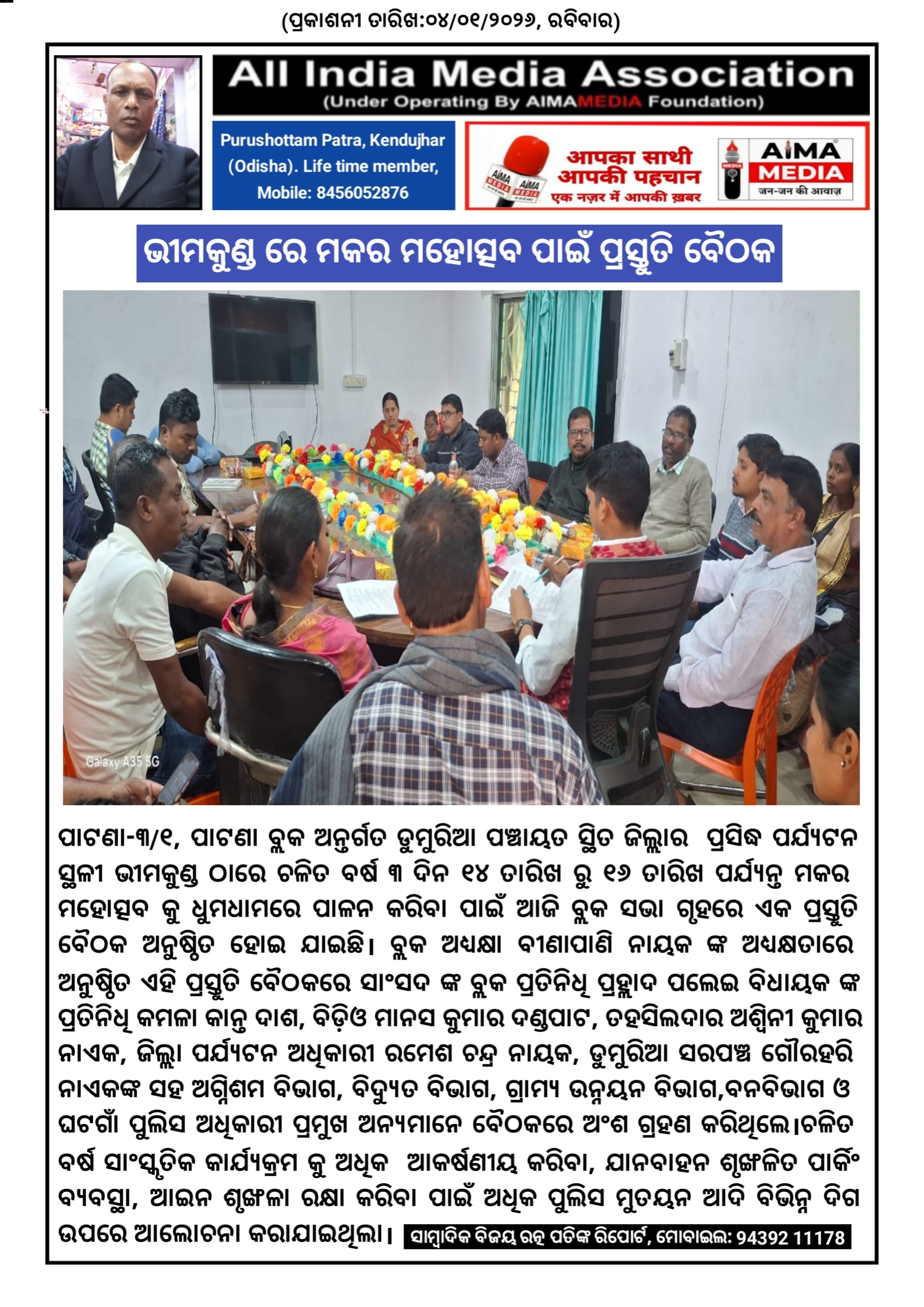 ଭୀମକୁଣ୍ଡ ରେ ମକର ମହୋତ୍ସବ ପାଇଁ ପ୍ରସ୍ତୁତି ବୈଠକ।