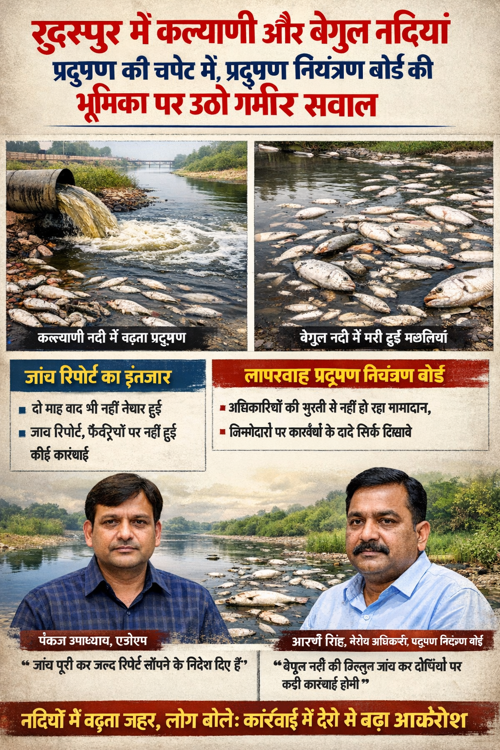 रुद्रपुर में कल्याणी और बेगुल नदियां प्रदूषण की चपेट में, प्रदूषण नियंत्रण बोर्ड की भूमिका पर उठे गंभीर सवाल