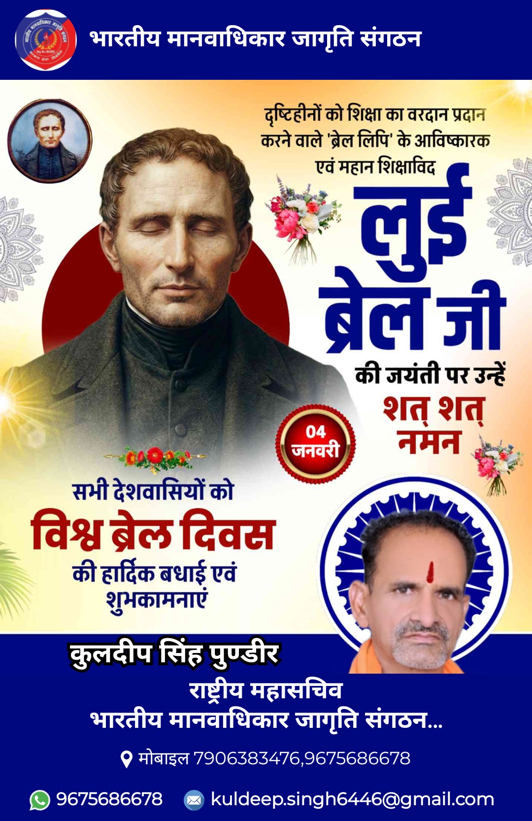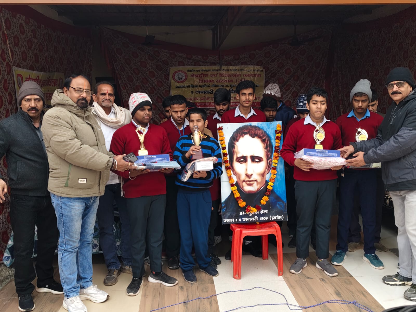 नेत्रहीन शिक्षा पद्धति के जनक ब्रेन लुइस का 217 वा जन्म दिन 4/01/2026 को नेत्रहीन एवं विकलांग कल्याण शिक्षण संस्थान चंद्र विहार बच्चो द्वारा धूमधाम