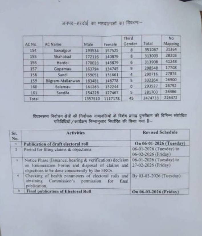 हरदोई की विधानसभाओं में अब मतदाताओं की स्थिति