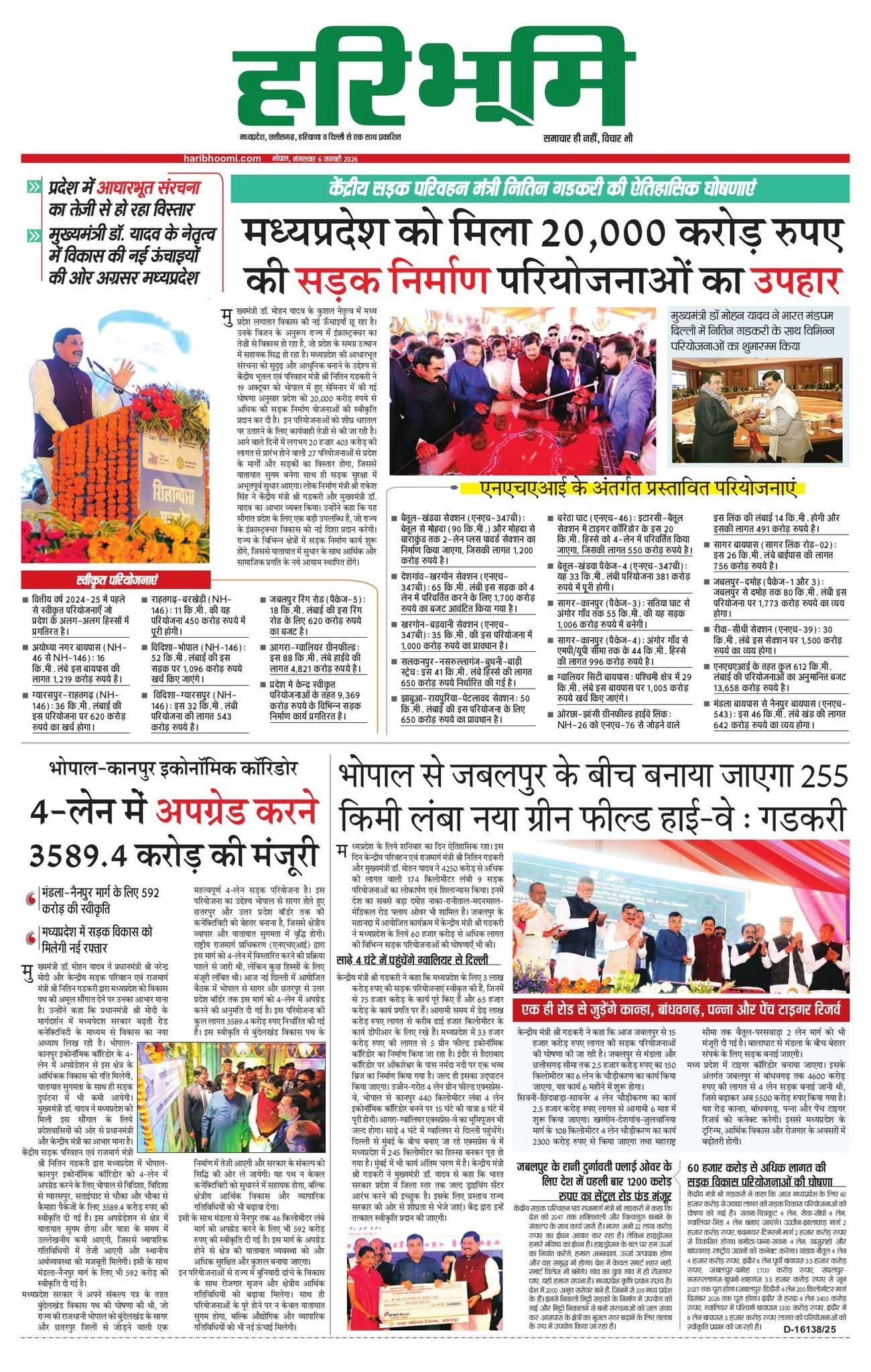 मध्यप्रदेश को मिला ₹20,000 करोड़ की सड़क निर्माण परियोजना का उपहार