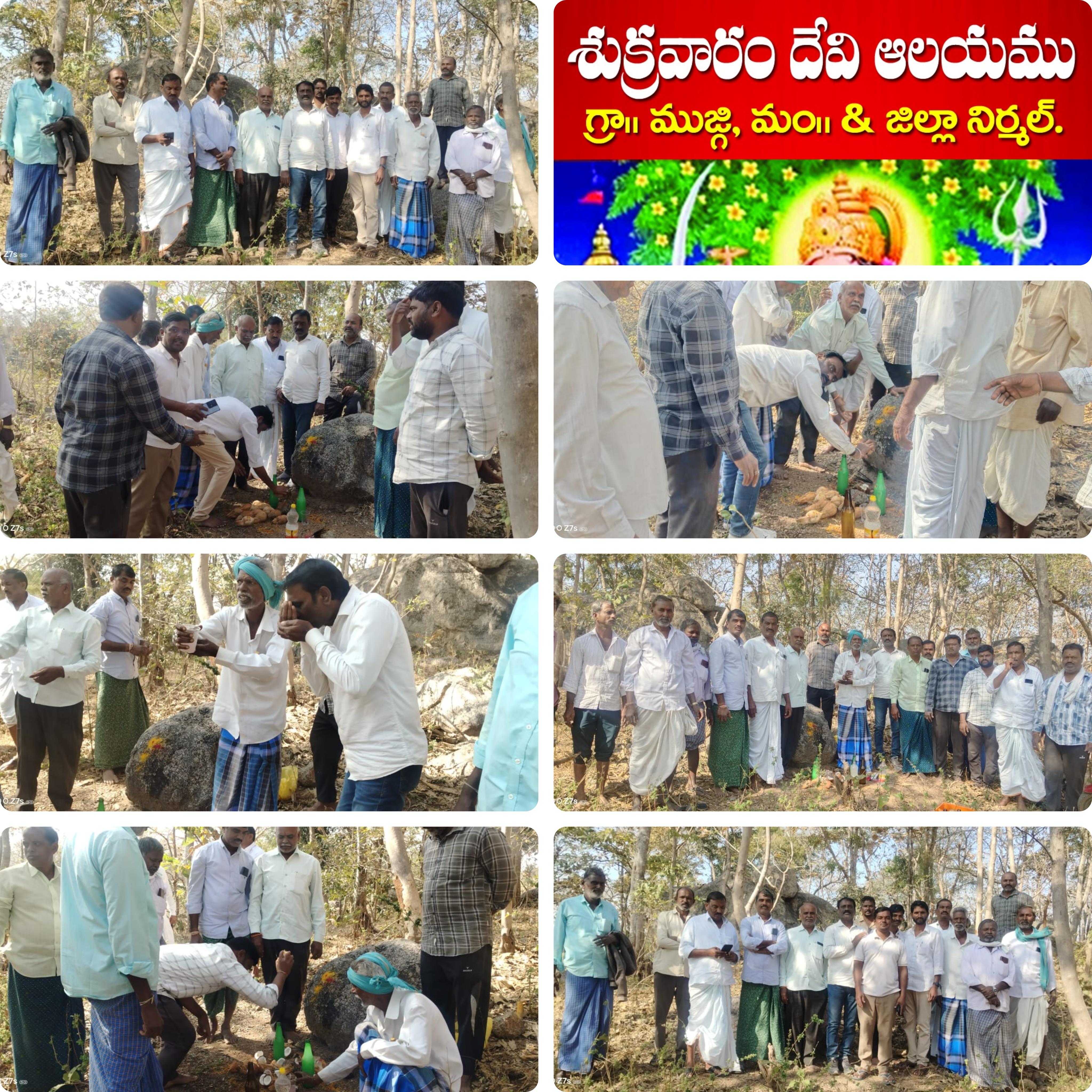 నిర్మల్ మండలం లోని ముజ్గి గ్రామములో శుక్రవారo దేవి ఆలయ నిర్మాణమునకు భూమి పూజ చేసిన ముజ్గి గ్రామస్తులు. ఈ కార్యక్రమములో పాల్గొన్న సర్పంచ్ పొలాస శ్రీనివాస్, ఉప సర్పంచ్ గంగసరం సాయన్న, మాజీ సర్పంచ్ పెద్దోళ్ల లావణ్య మహేందర్ ఎంబరి గంగాధర్,నానం మహేందర్, గుడ్డోళ్ళ సాయన్న,బద్ధం లింగారెడ్డి,బద్ధం నారాయణ రెడ్డి, మహేందర్, అడేపు నర్సయ్య,కుమ్మరి గంగయ్య,కోలుకొండ నర్సయ్య,,చొక్కాల భూమన్న,గున్నాల రాజేశ్వర్,గుడిసె భీమన్న,గుడిసె గంగయ్య, నూతికాడి దేవన్న,కనక రాజేశ్వర్,కనక బొర్రన్న,పిప్పెర ప్రవీణ్,నాణం నాగేందర్, ఏపురి రాజు,బొడ్డు మహిపాల్,గుమ్మిర్యాల మల్లేష్, నూతికాడి శ్రీనివాస్,కొండూరు ప్రసాద్, కొండూరు నర్సయ్య,గోడిసెల శ్రీనివాస్ గౌడ్ ,శంకర్ గౌడ్,కొలుకొండ గంగారెడ్డి,కొండూరు దేవన్న మరియు తదితరులు ముజ్గి గ్రామ ప్రజలు పాల్గొన్నారు.