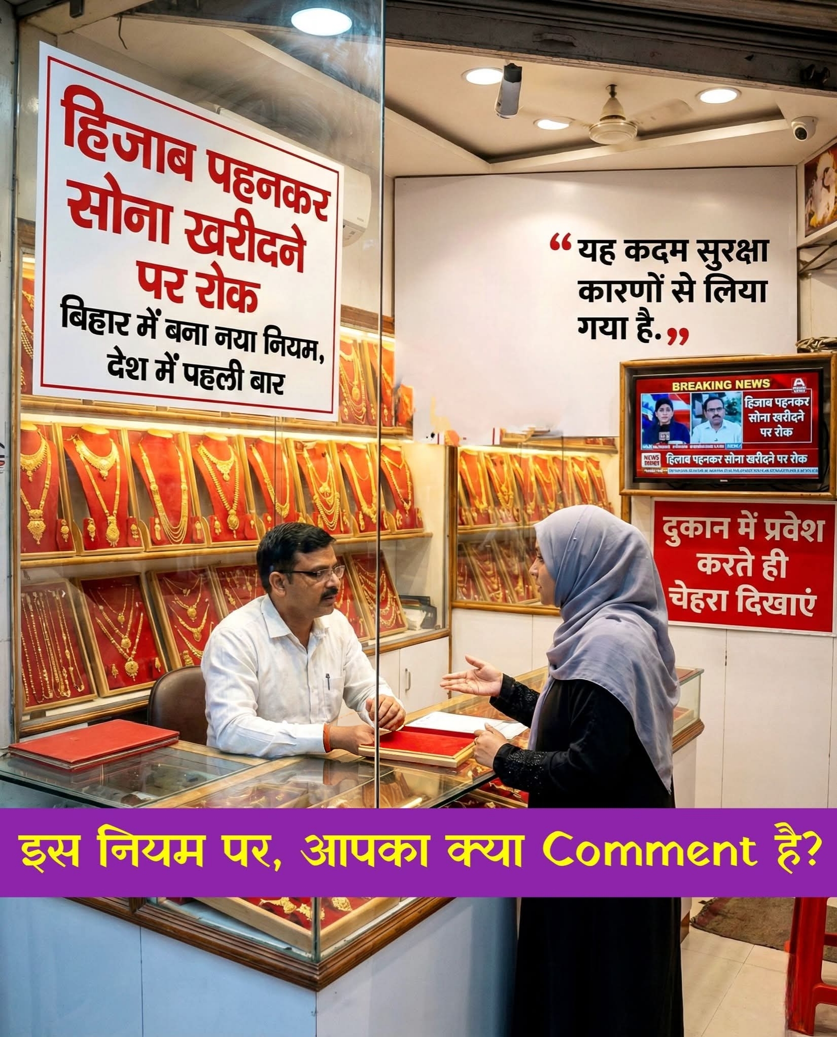 हिजाब, नकाब, बुर्का, घूंघट, हेलमेट, मास्क या गमछा (मुरेठा) पहनकर आने वाले ग्राहकों को दुकान में एंट्री नहीं मिलेगी। ग्राहकों को चेहरा दिखाकर पहचान सत्यापित कराने के बाद ही सोना-चांदी या आभूषण खरीदने की अनुमति होगी।
